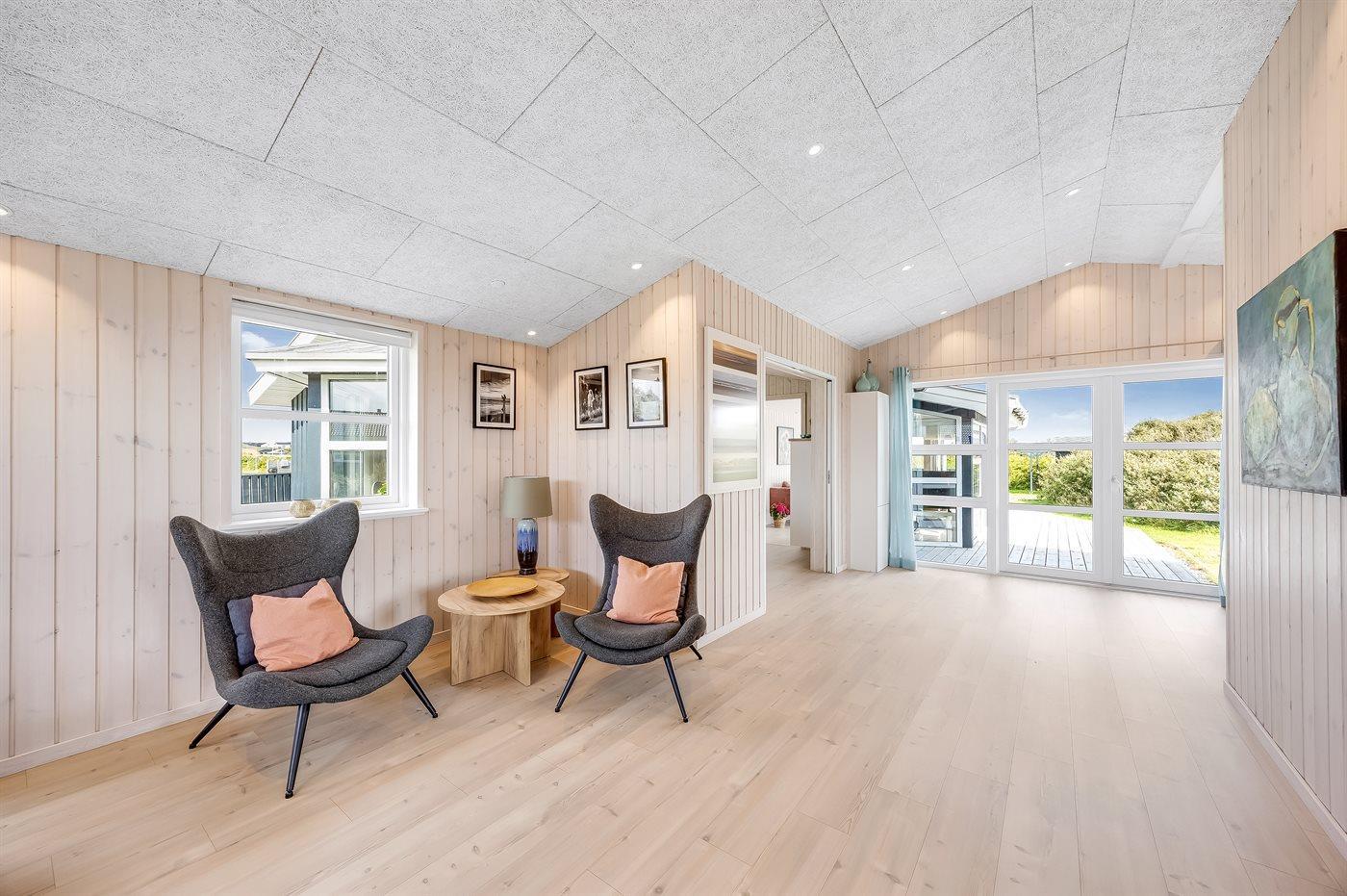 Dejligt moderniseret sommerhus i træ beliggende 200 m fra stranden og den populære badeby Løkken. Huset er omgivet af store åbne terrassearealer, der er udstyret med havemøbler og solsenge.