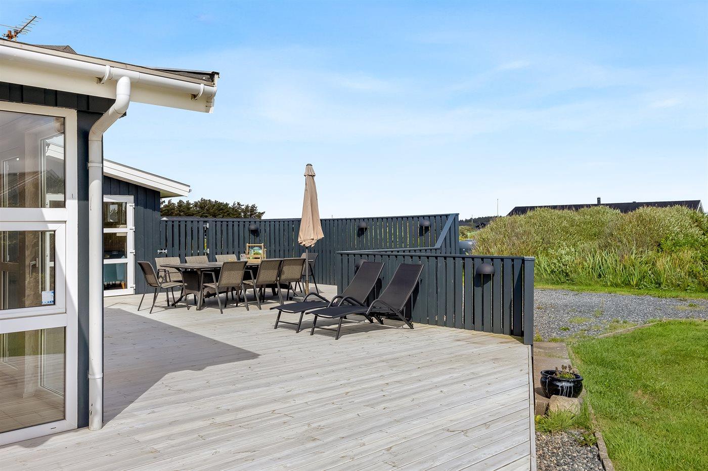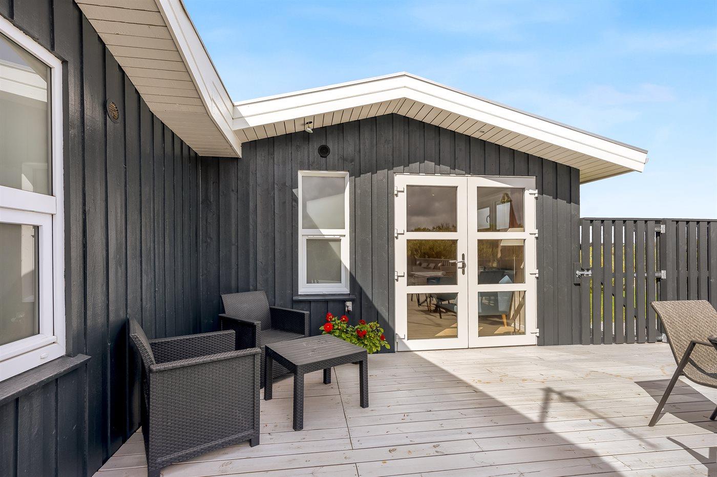 Moderne sommerhus tæt på stranden i Løkken med store terrasser og faciliteter til hele familien.
