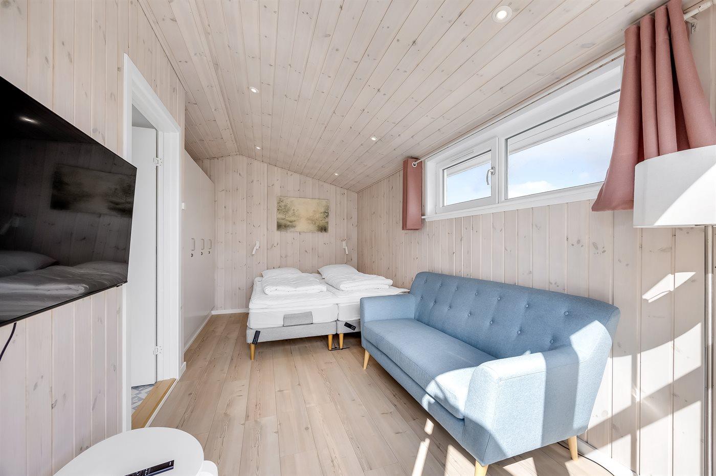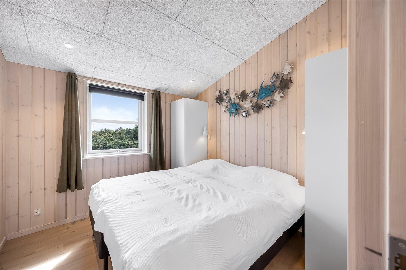 Der findes i alt 4 soveværelser med klædeskabe. Sovepladserne fordeler sig på 6 sovepladser i dobbeltsenge og 2 sovepladser i elevationssenge. Derudover er der 1 stk. barneseng.