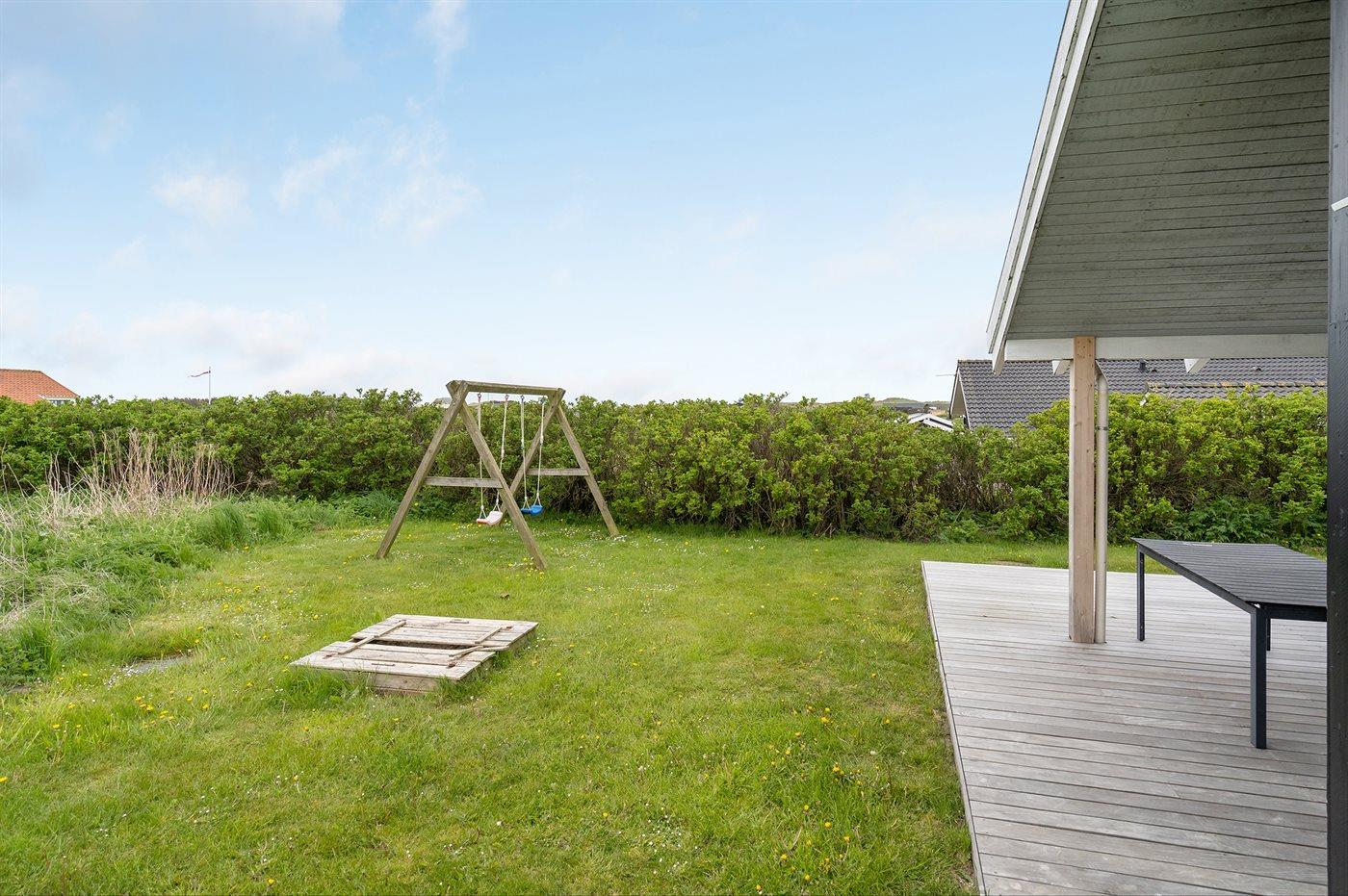 Ferieboligen er beliggende på en 1256 m² stor naturgrund. Der er 500 m til havet. Nærmeste forretning er beliggende i en afstand af 2000 m. Til ferieboligen hører 40 m² terrasseareal. Desuden er der 10 m² overdækket terrasse. Der er redskabsrum. Gynge. Parkering ved ferieboligen.