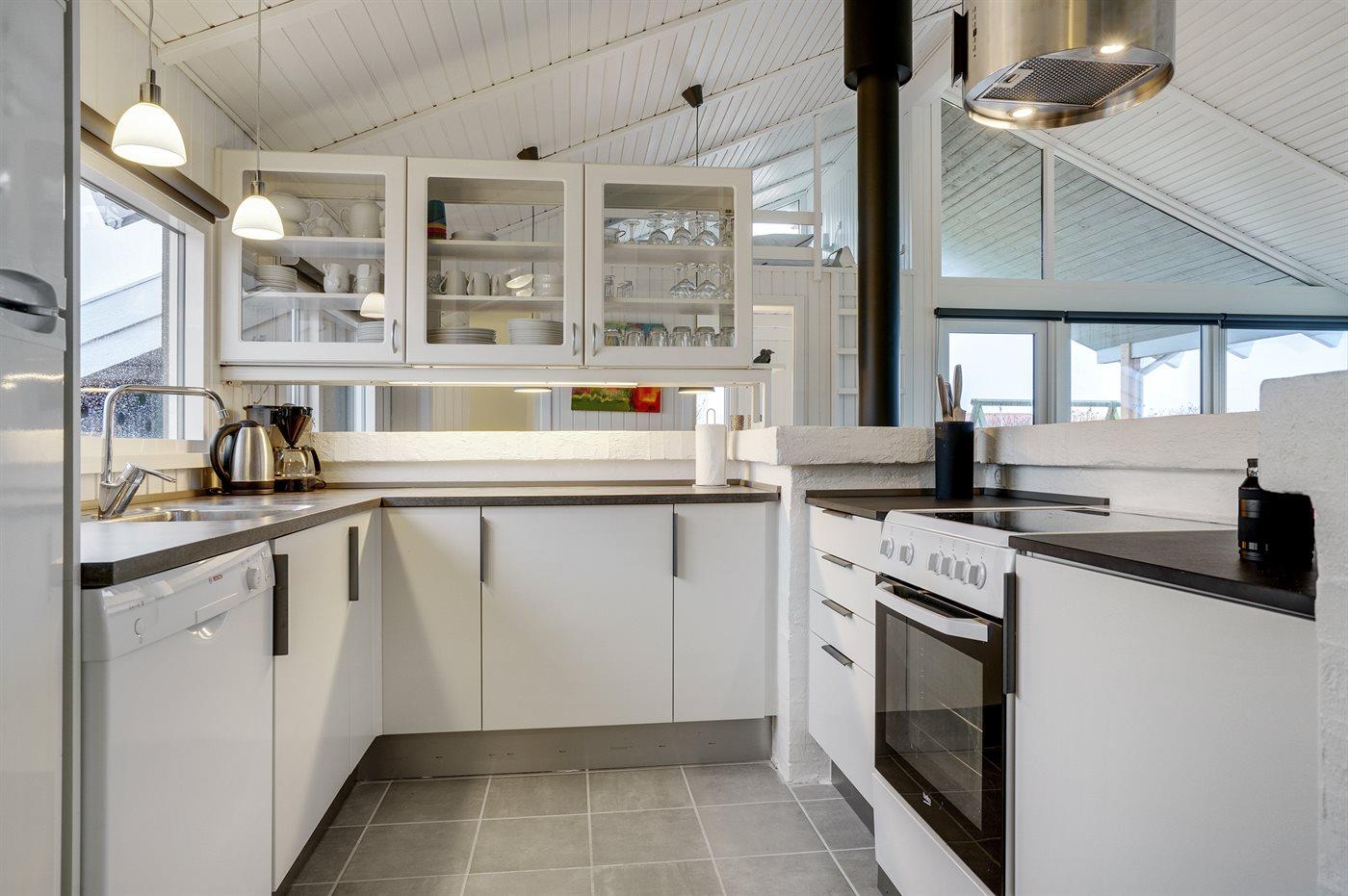 Køkkenet er udstyret med 1 køleskab. Der er 4 keramiske kogeplader, varmluftovn, mikrobølgeovn samt opvaskemaskine.