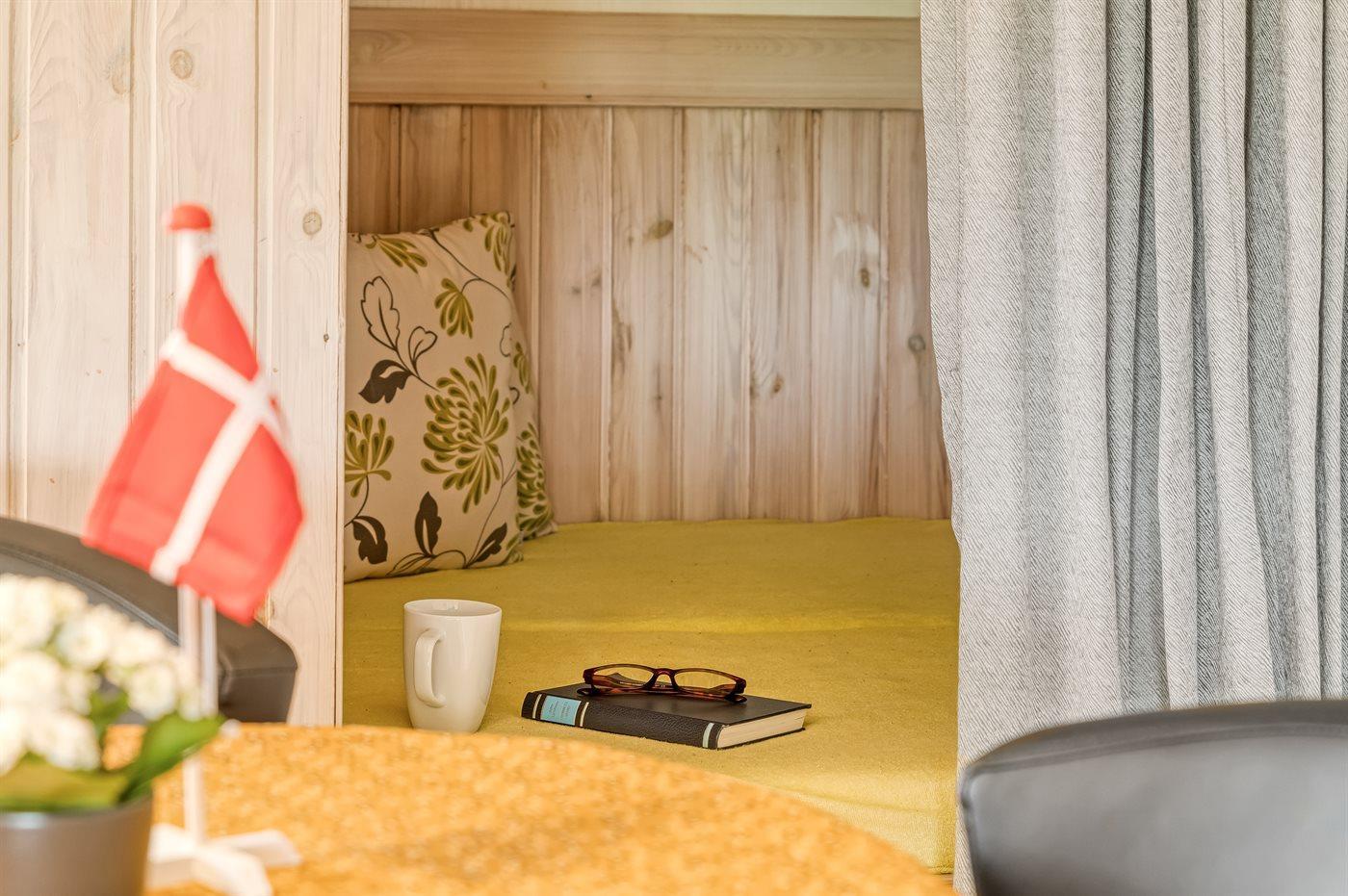 Der er i alt 3 soveværelser. Sovepladserne fordeler sig på: 4 sovepladser i dobbeltsenge. 1 soveplads i enkeltseng. 2 sovepladser i køjeseng. 2 sovepladser på madrasser. 2 sovepladser i alkove. 2 af disse sovepladser befinder sig på husets hems. Derudover er der 1 stk. barneseng.
