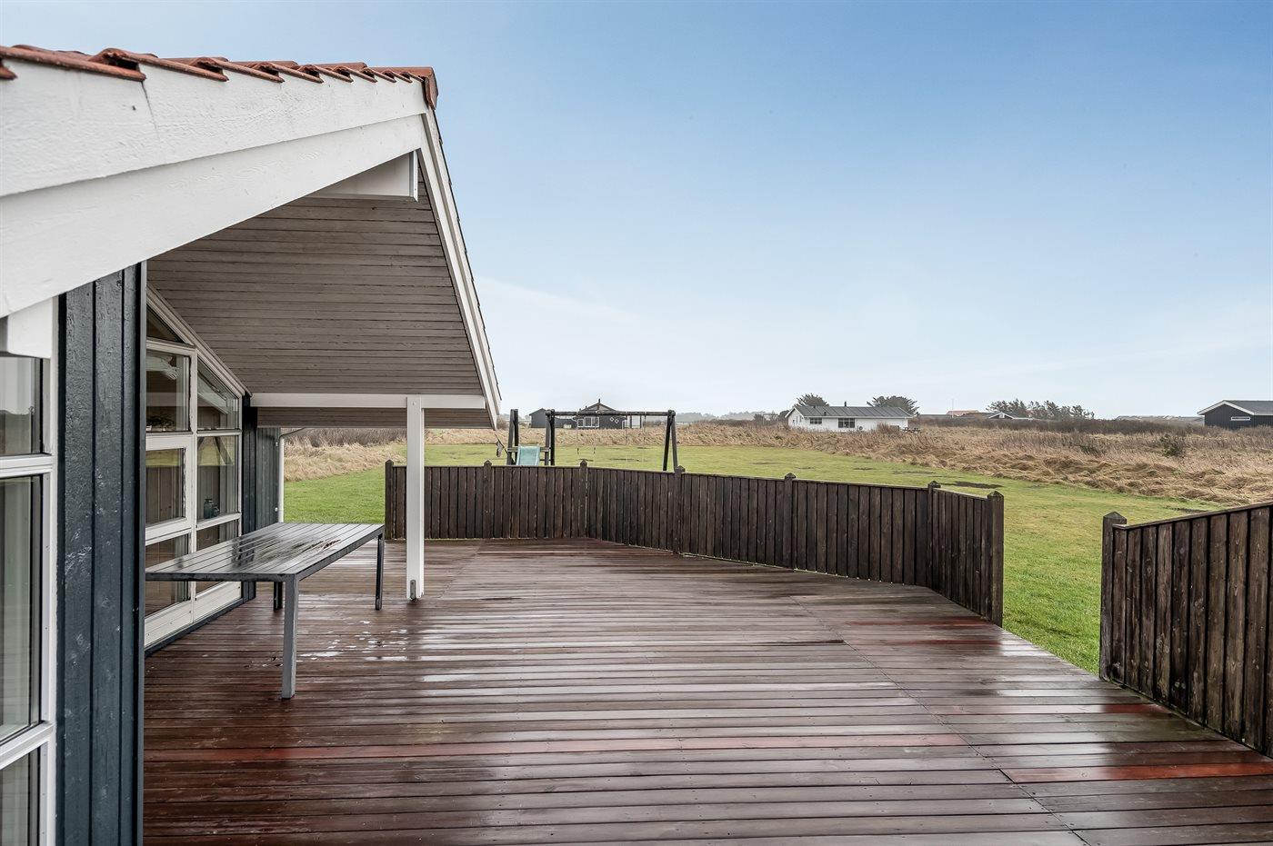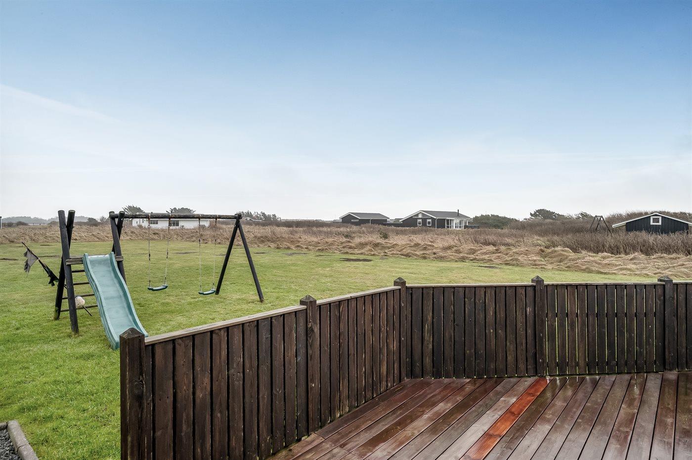 Ferieboligen er beliggende på en 2600 m² stor naturgrund. Der er 200 m til havet. Nærmeste forretning er beliggende i en afstand af 1000 m. Der er en golfbane i en afstand af 2000 m. Til ferieboligen hører 90 m² terrasseareal. Desuden er der 13 m² overdækket terrasse. Gynge. Legetårn. Rutchebane. Parkering ved ferieboligen.