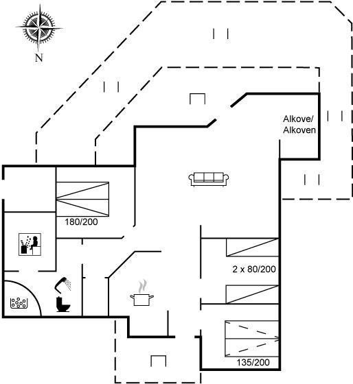 Der er i alt 3 soveværelser. Sovepladserne fordeler sig på: 2 sovepladser i dobbeltseng. 2 sovepladser i enkeltsenge. 2 sovepladser i sovesofa (dobbelt).
