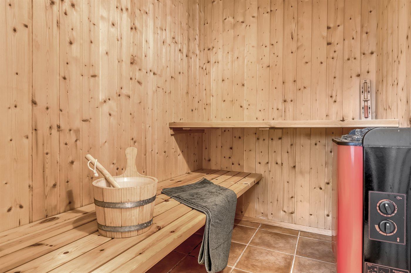Der er 1 badeværelse med bruseniche og 1 toilet.. Der er gulvvarme på 1 badeværelse. I saunaen er der mulighed for afslapning.
