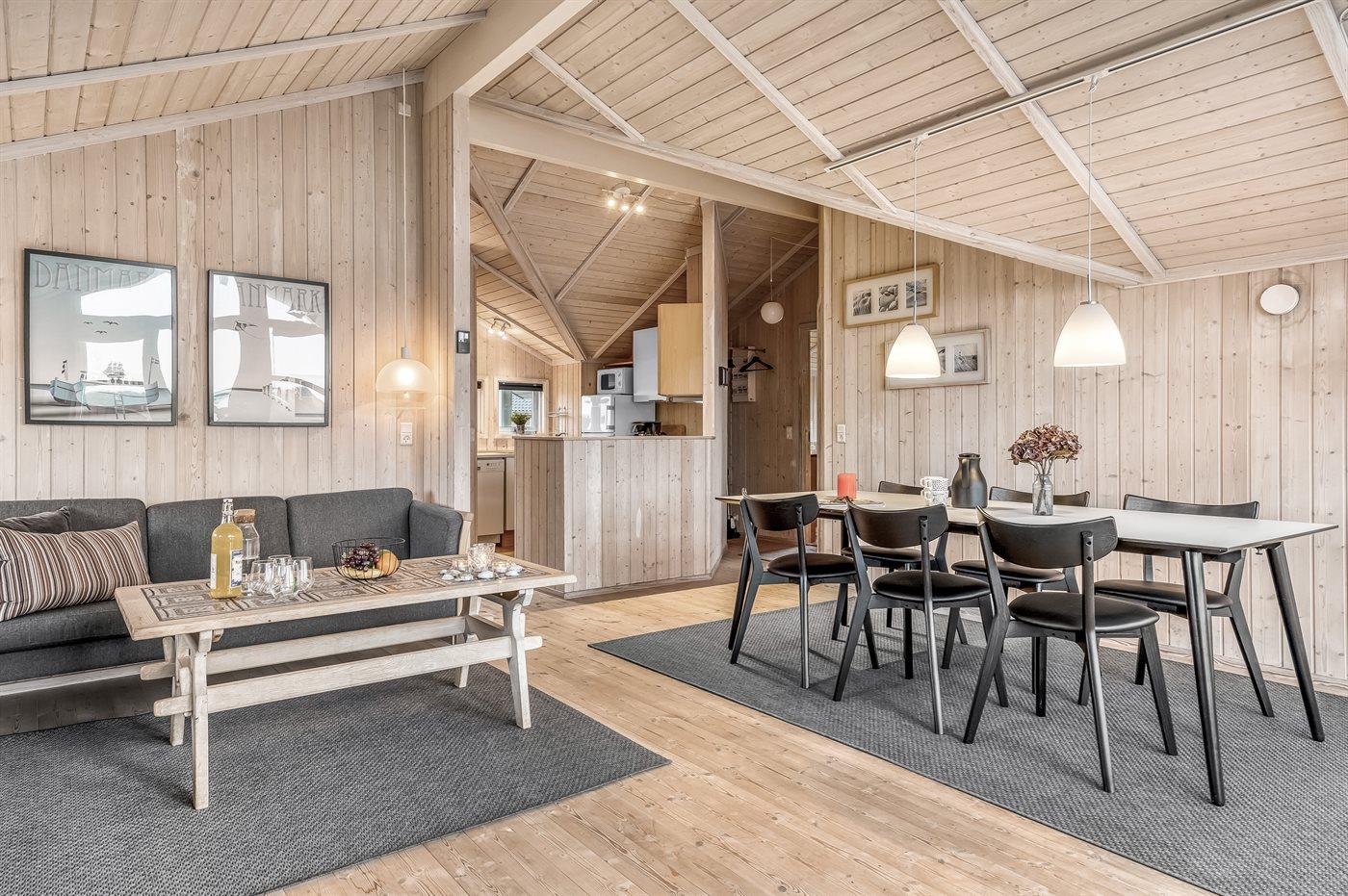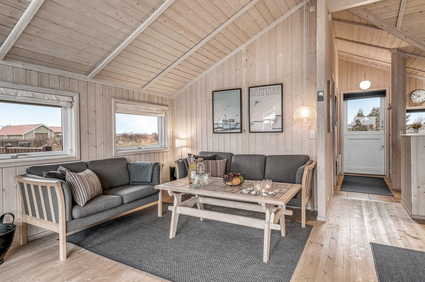 Et lyst og velholdt sommerhus med havkik fra stuen og havudsigt fra grunden.