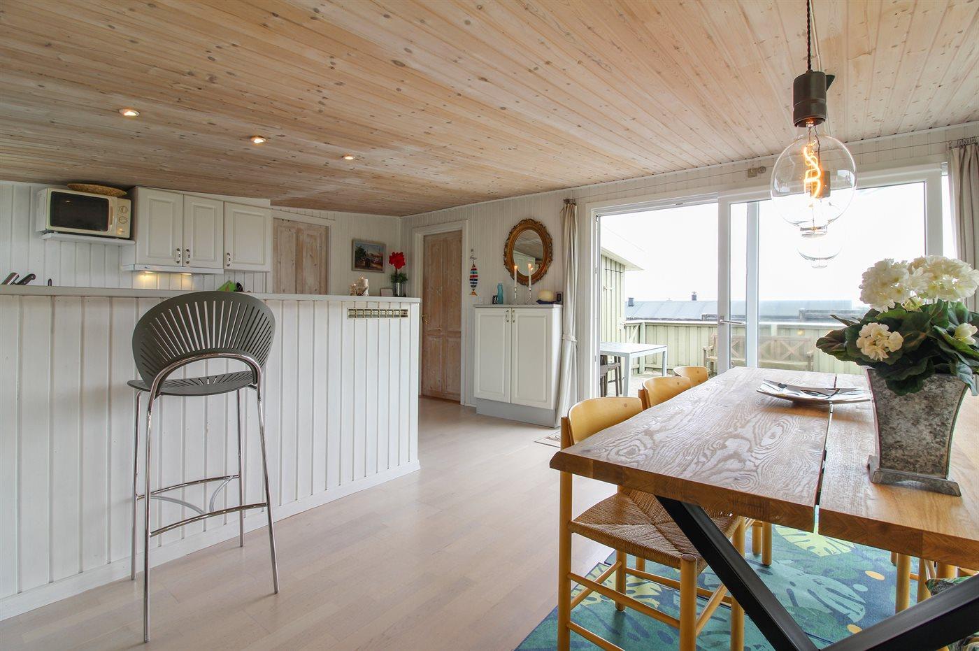 Køkkenet er udstyret med 1 køleskab. Der er 4 keramiske kogeplader, varmluftovn, mikrobølgeovn samt opvaskemaskine.