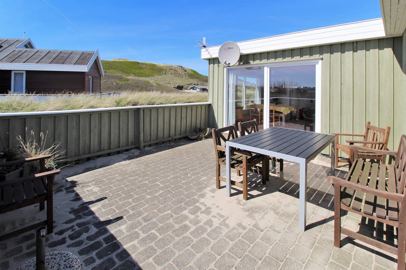 Ferieboligen er beliggende på en 898 m² stor naturgrund. Der er 220 m til havet. Nærmeste forretning er beliggende i en afstand af 500 m. Heraf i alt 50 m² lukket terrasse. Der er redskabsrum. Parkering ved ferieboligen.