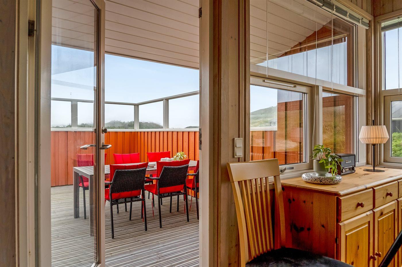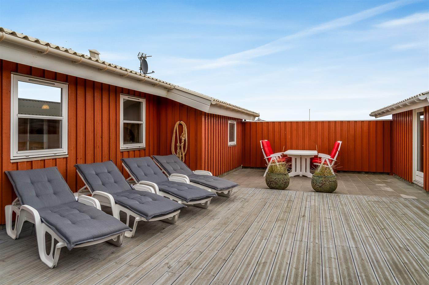 Ferieboligen er beliggende på en 800 m² stor naturgrund. Der er 75 m til havet. Nærmeste forretning er beliggende i en afstand af 600 m. Heraf i alt 60 m² lukket terrasse. Der er redskabsrum. Parkering ved ferieboligen.