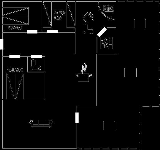 Der er i alt 3 soveværelser. Sovepladserne fordeler sig på: 4 sovepladser i dobbeltsenge. 2 sovepladser i enkeltsenge.