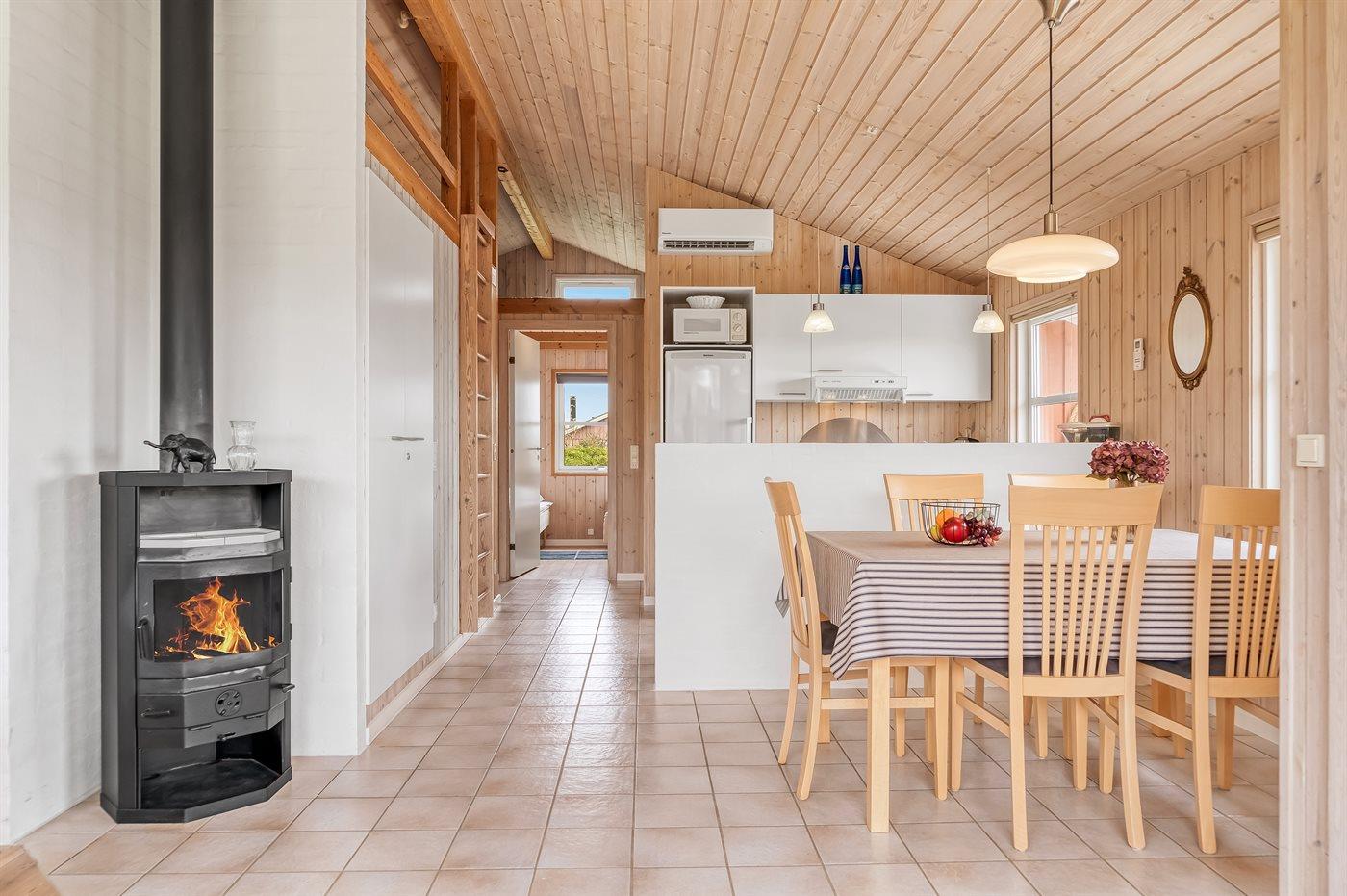 Sommerhuset egner sig til 6 personer. Ferieboligen er på 86 m² og er bygget i 1996. Det er tilladt at medbringe 2 husdyr. Ferieboligen er udstyret med energibesparende varmepumpe. Ferieboligen har vaskemaskine. Tørretumbler. Frysekapacitet på 40 liter. Der er desuden brændeovn.