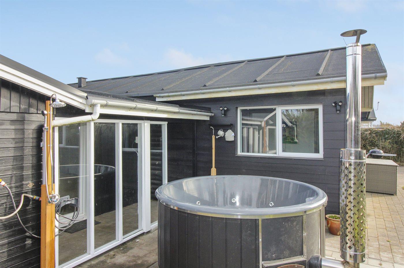 Her er huset der giver dig sol hele dagen – uanset om du er til morgenmad på terrassen, solbadning eller aftenhygge i vildmarksbad, der er tilgængeligt fra uge 16 til og med uge 42. Med terrasser på 3 sider af huset, får du det hele med.