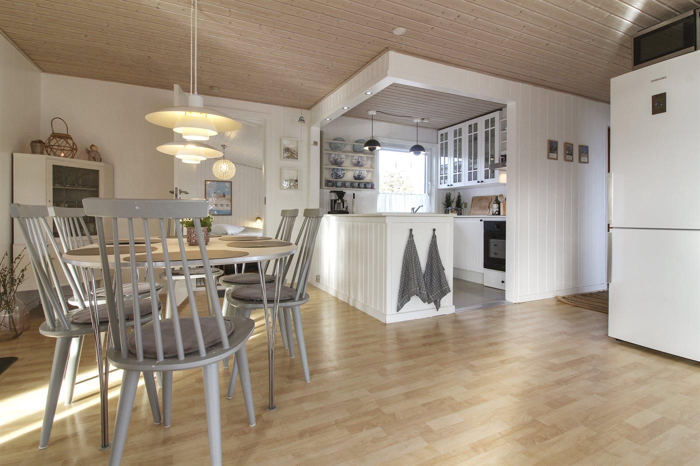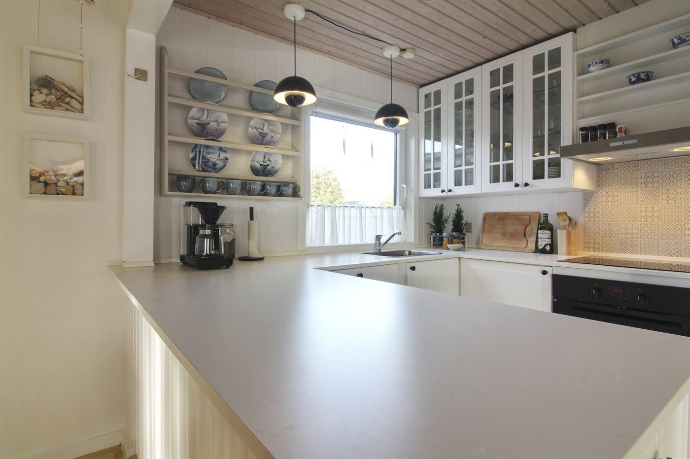 Køkkenet er udstyret med 1 køleskab. Der er 4 keramiske kogeplader. Der findes komfur med opvaskemaskine, bageovn, varmluftovn, mikrobølgeovn samt opvaskemaskine.