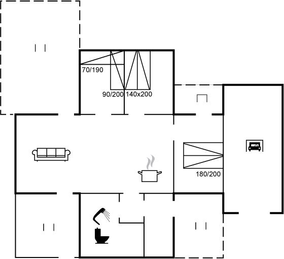 Der er i alt 3 soveværelser. Sovepladserne fordeler sig på: 4 sovepladser i dobbeltsenge. 1 soveplads i enkeltseng.1 soveplads i køjeseng. Derudover er der 1 stk. barneseng.