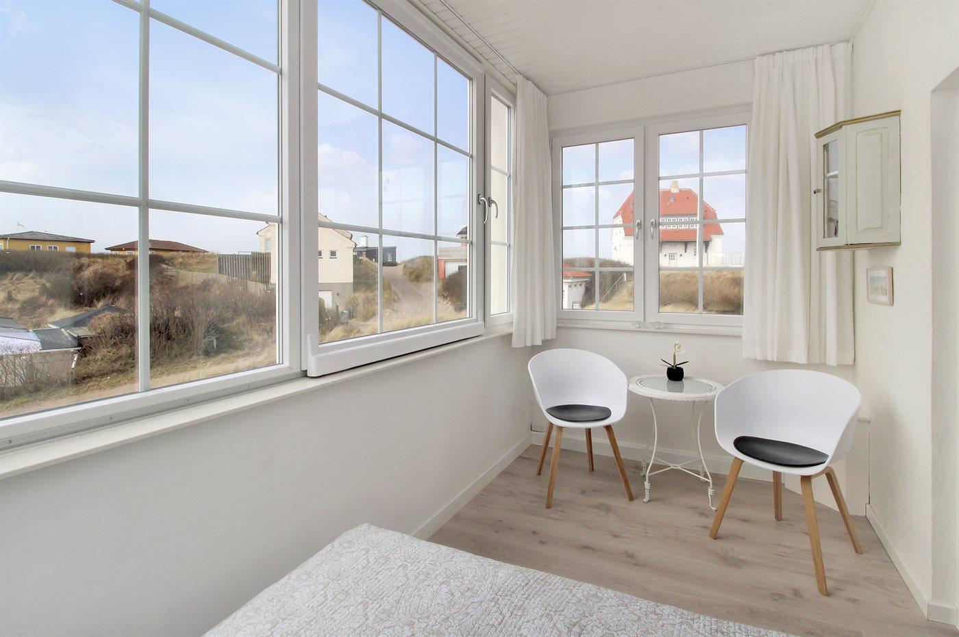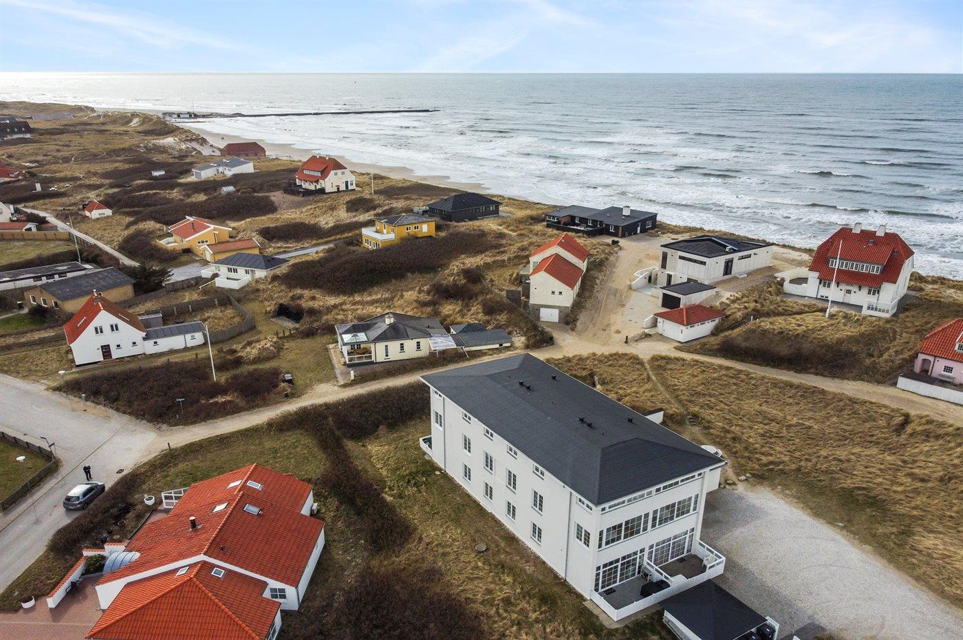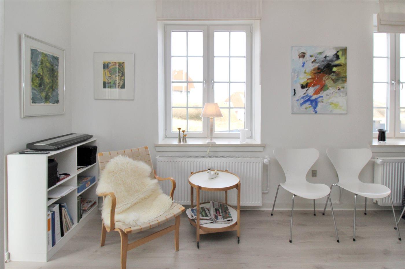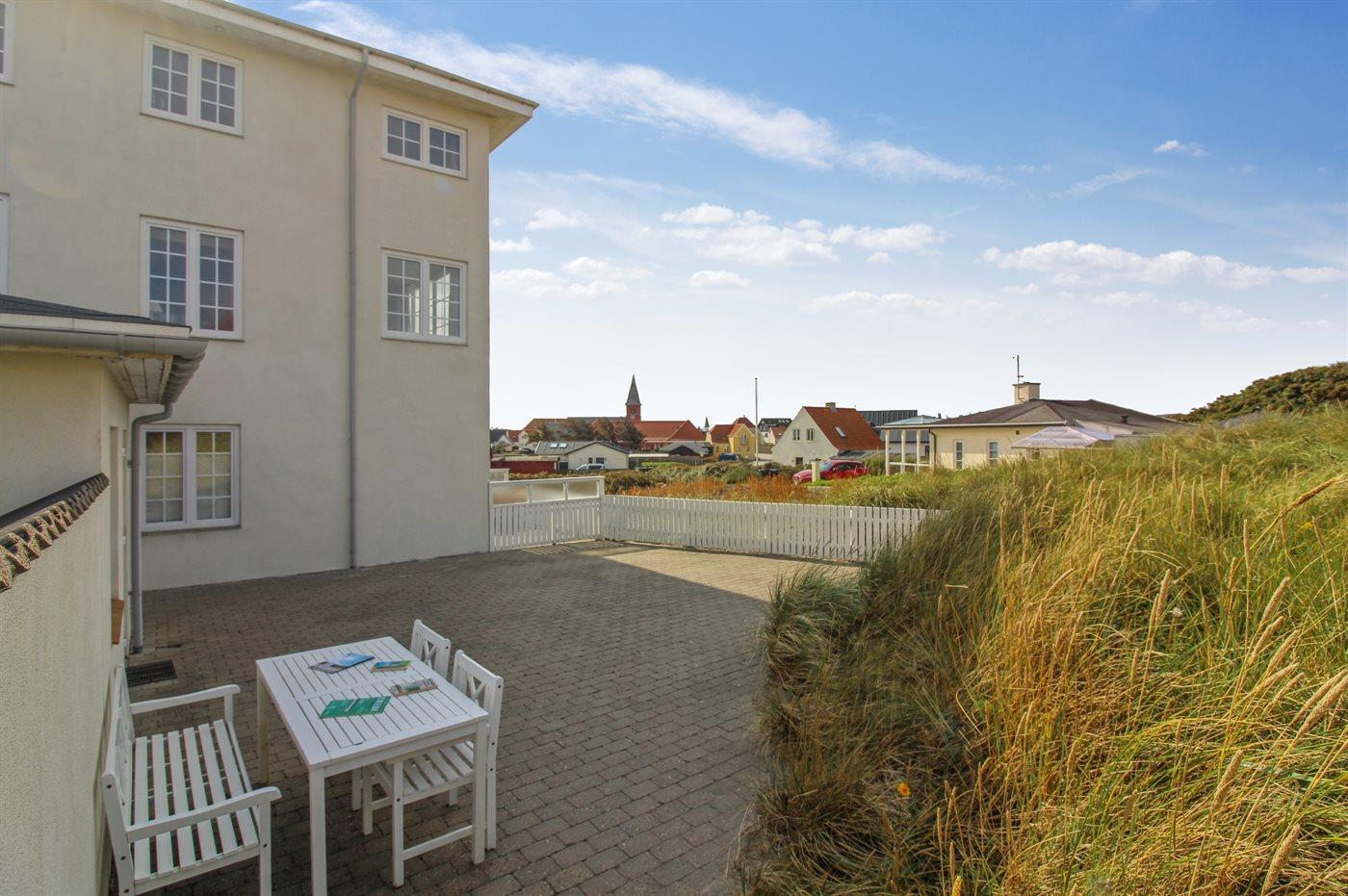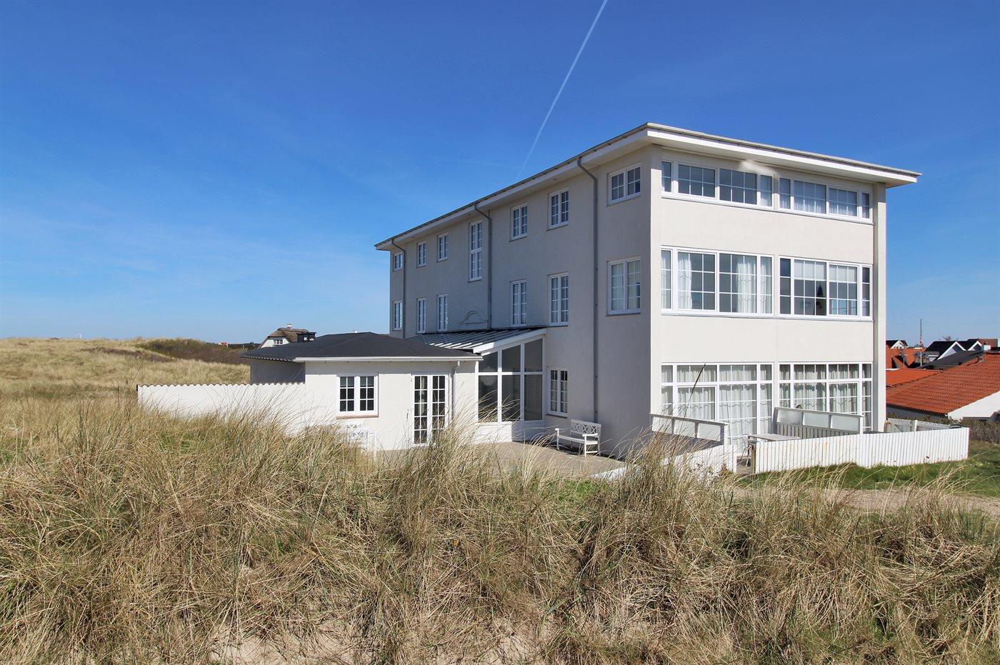 Skøn og meget velholdt ferielejlighed med en lys og indbydende indretning og en attraktiv beliggenhed lige ved stranden og Vesterhavet med direkte udgang til klitterne. Til lejlighederne hører en dejlig stor fælles terrasse med gode læ muligheder, hvorfra en sti fører direkte til stranden. Tæt på ligger centrum med de hyggelige med små gule huse, cafeer, restauranter og butikker.