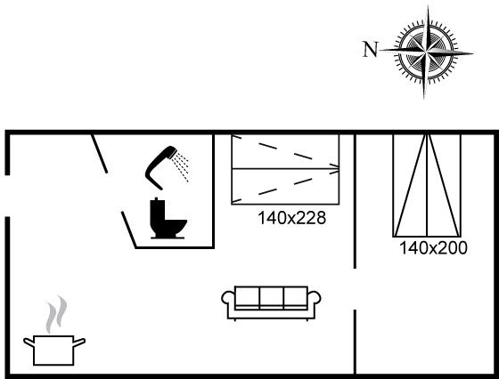 Der er i alt 1 soveværelse. Sovepladserne fordeler sig på: 2 sovepladser i dobbeltseng. Der er gulvvarme i et af soveværelserne.