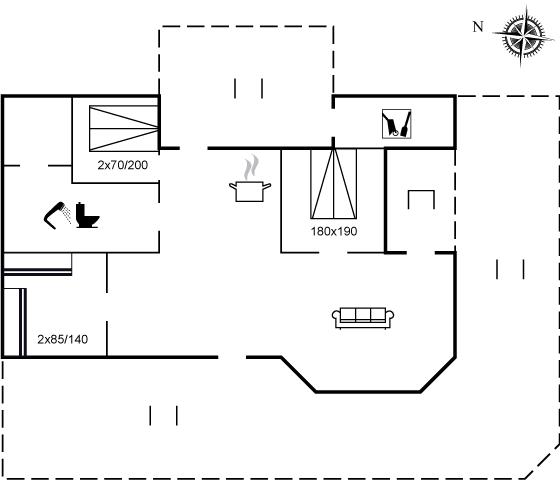 Der er i alt 3 soveværelser. Sovepladserne fordeler sig på: 4 sovepladser i dobbeltsenge. 2 sovepladser i køjeseng. Derudover er der 1 stk. barneseng.
