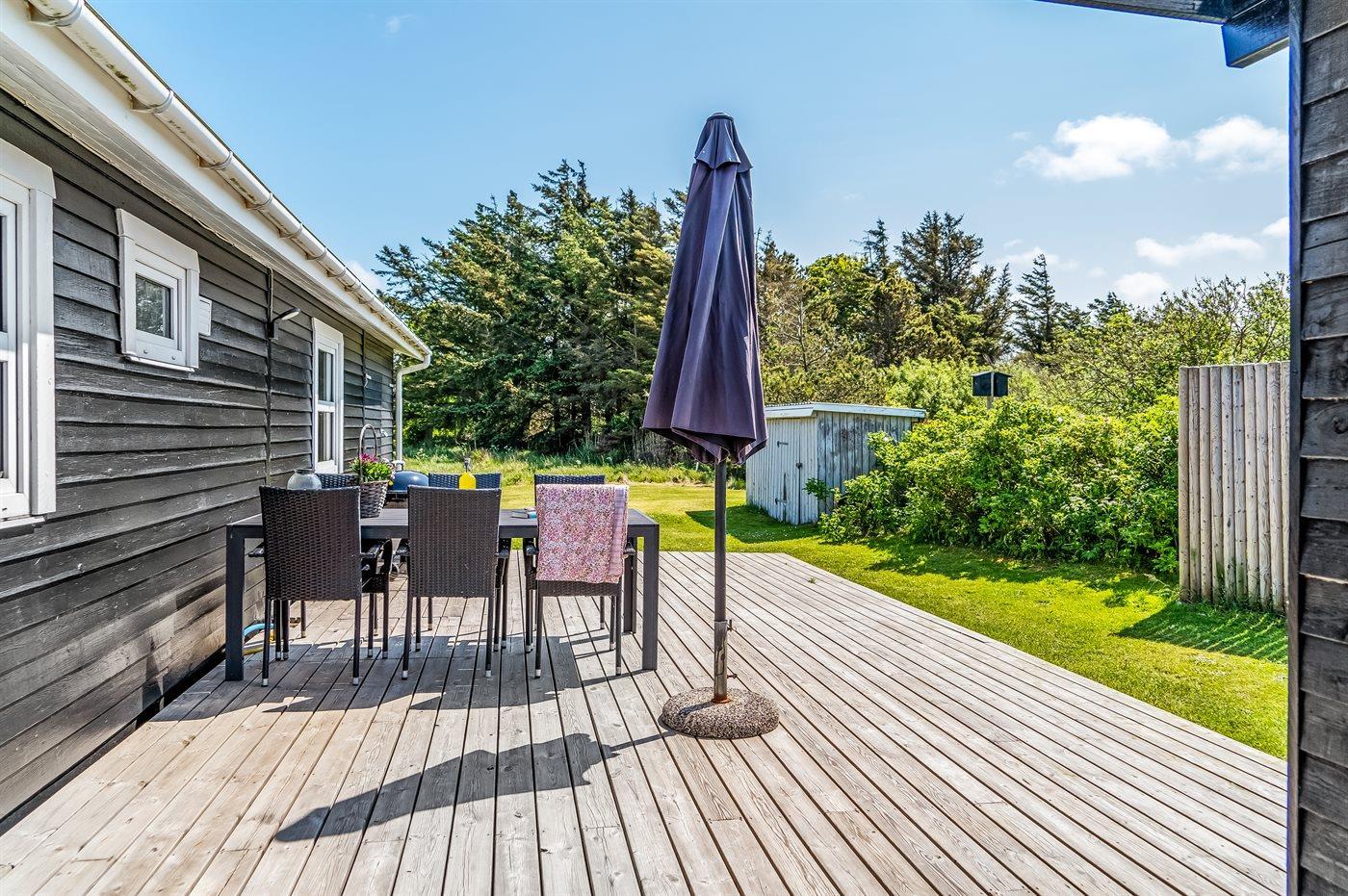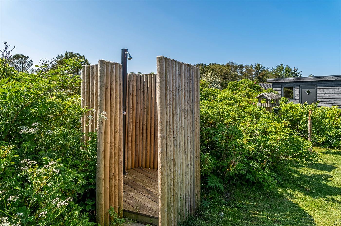 Ferieboligen er beliggende på en 1648 m² stor naturgrund. Der er 600 m til havet. Nærmeste forretning er beliggende i en afstand af 700 m. Til ferieboligen hører 44 m² terrasseareal. Gynge. Udendørs bruser. Grill til rådighed.