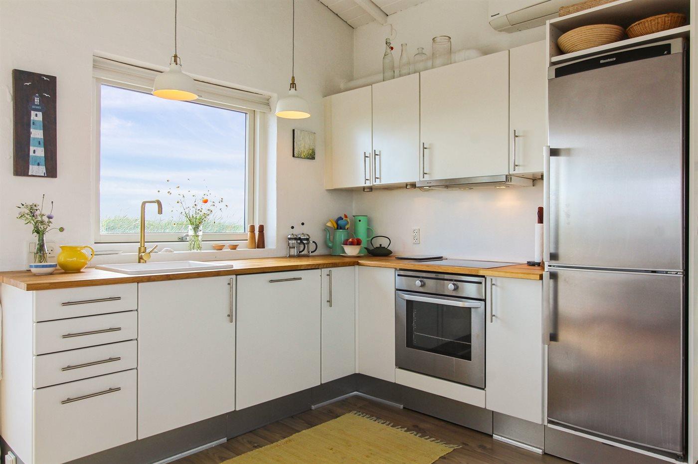 Køkkenet er udstyret med 1 køleskab. Der er 4 keramiske kogeplader, varmluftovn samt opvaskemaskine.