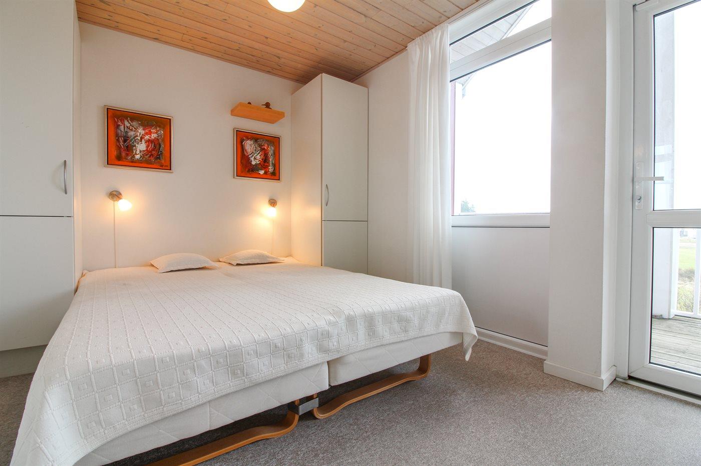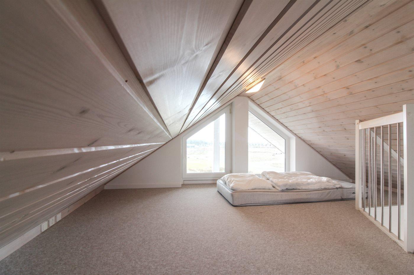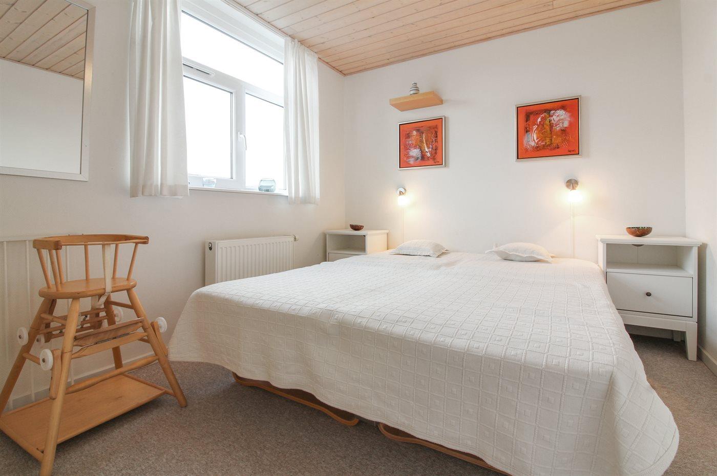 Der er i alt 2 soveværelser. Sovepladserne fordeler sig på: 4 sovepladser i dobbeltsenge. 2 sovepladser på madrasser. 2 af disse sovepladser befinder sig på husets hems. Derudover er der 1 stk. barneseng.