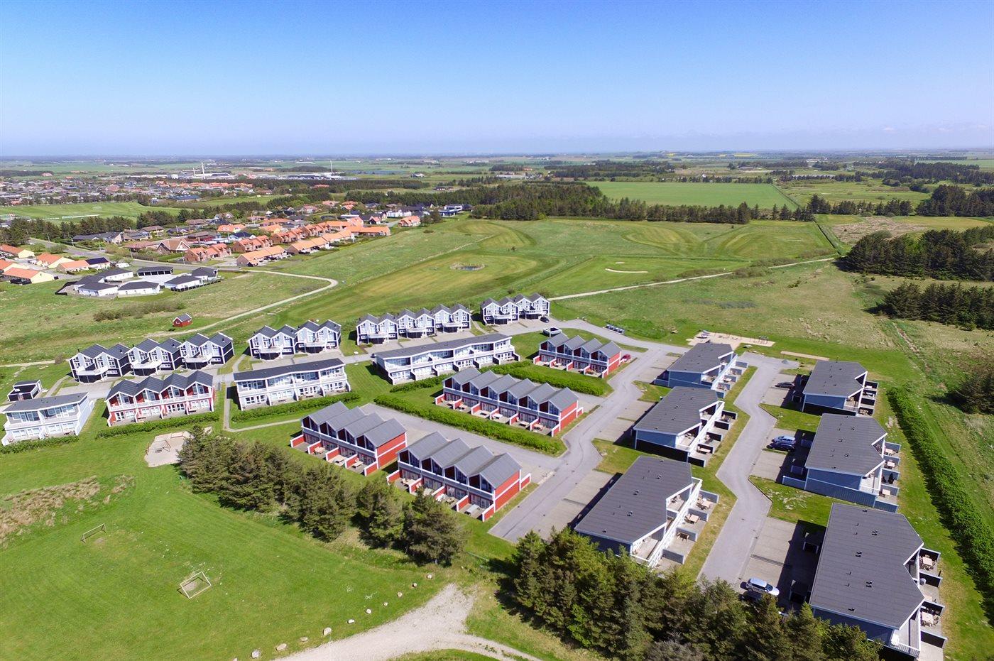 Ferieboligen er beliggende på en 50 m² stor naturgrund. Der er 900 m til havet. Nærmeste forretning er beliggende i en afstand af 700 m. Der er en golfbane i en afstand af 100 m. Til ferieboligen hører 19 m² terrasseareal. Desuden er der 8 m² overdækket terrasse. Der er redskabsrum. Der ligger en legeplads i en afstand af 10 m. Gasgrill til rådighed. Parkering ved ferieboligen.