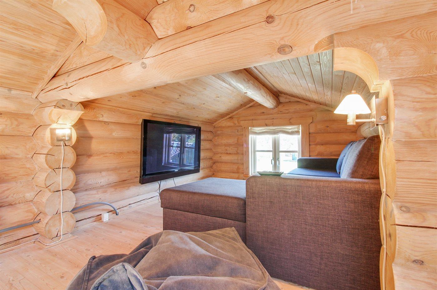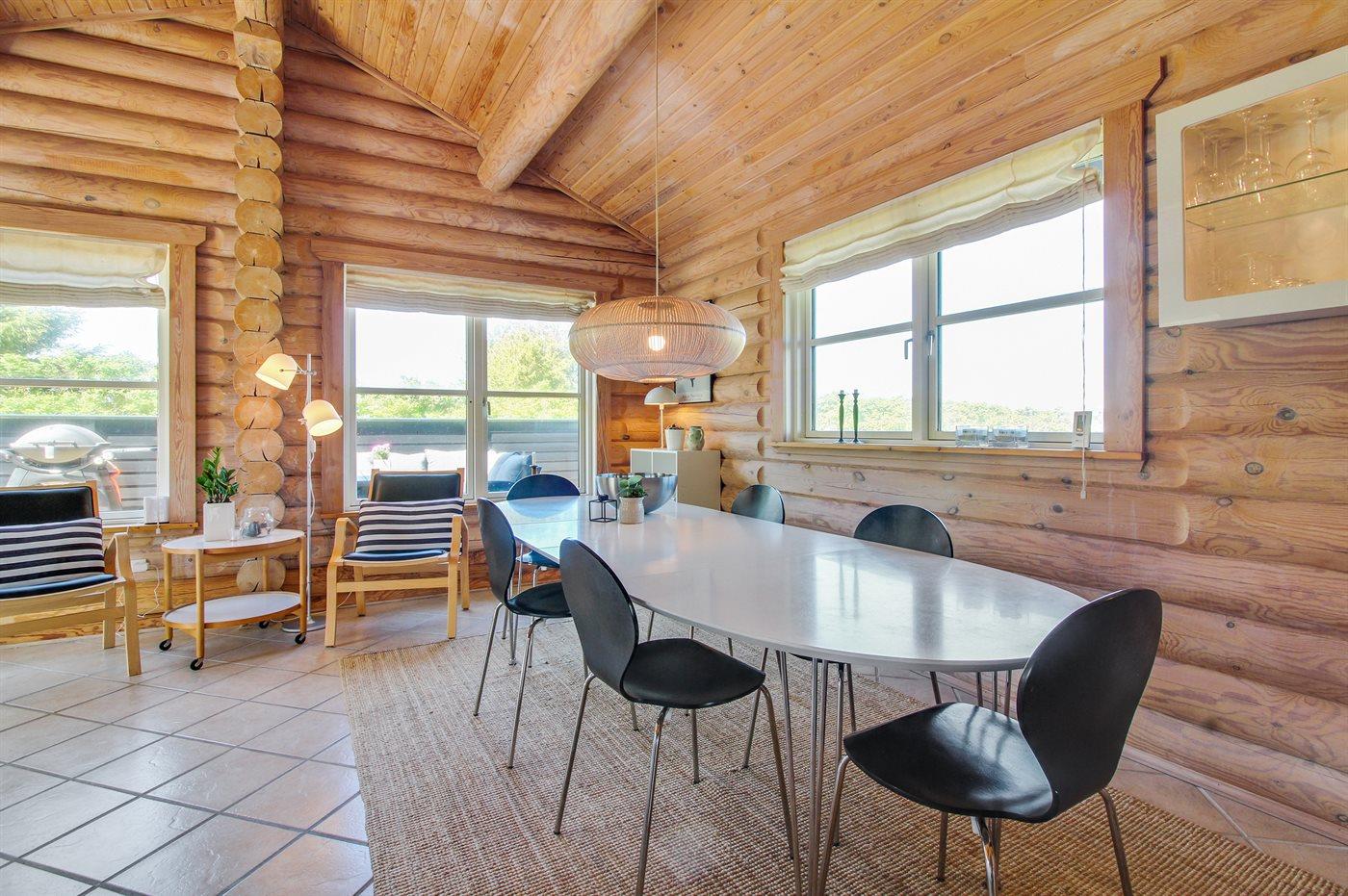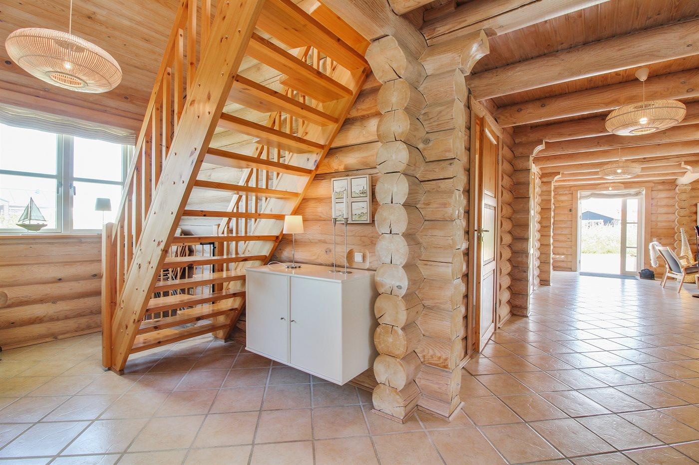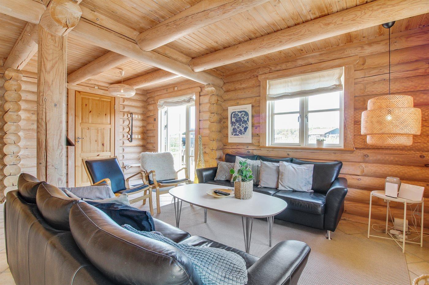 Sommerhus beliggende for enden af blind vej i roligt sommerhusområde. Huset er et flot bjælkehus med 60 m2 hems, hvor børnene kan få meget tid til at gå med at lege.
