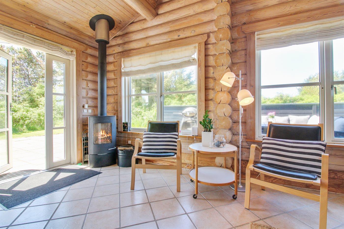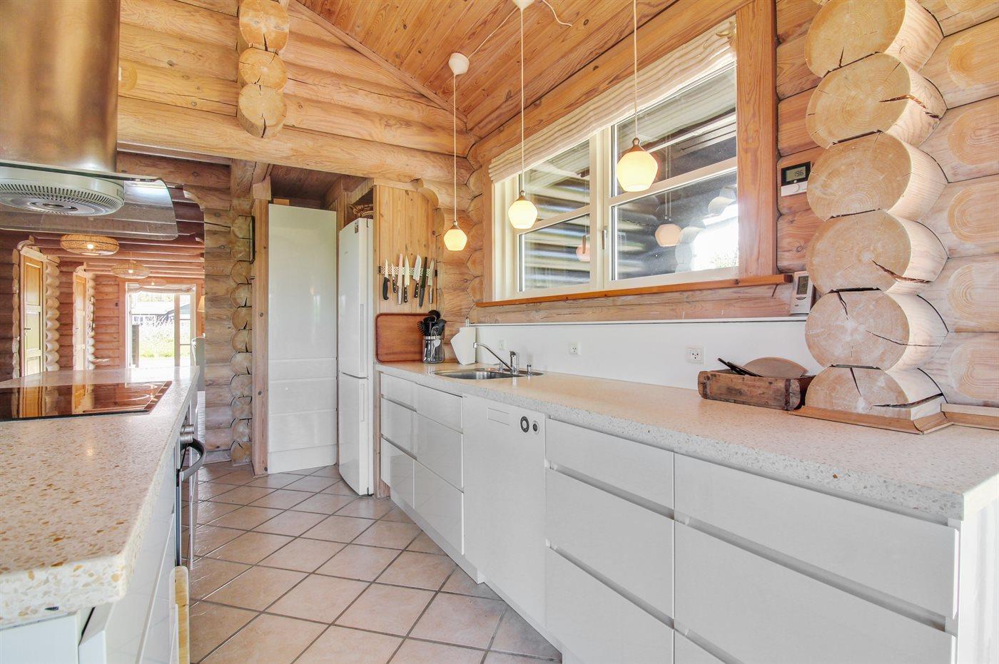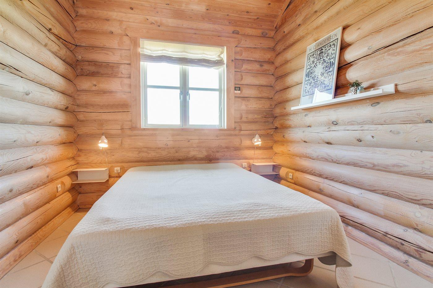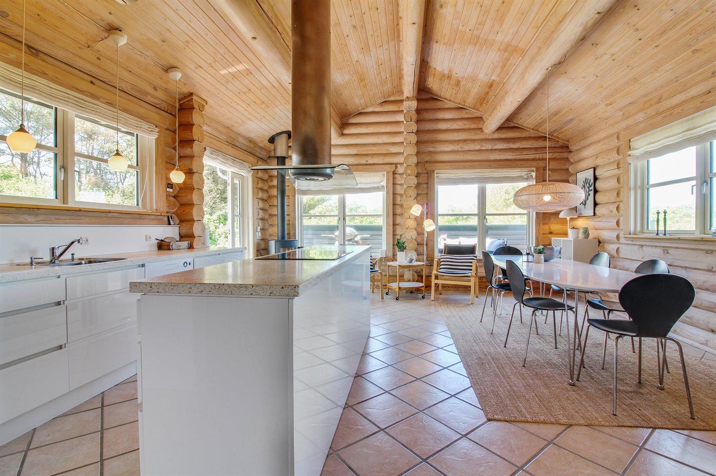 Sommerhus beliggende for enden af blind vej i roligt sommerhusområde. Huset er et flot bjælkehus med 60 m2 hems, hvor børnene kan få meget tid til at gå med at lege.
