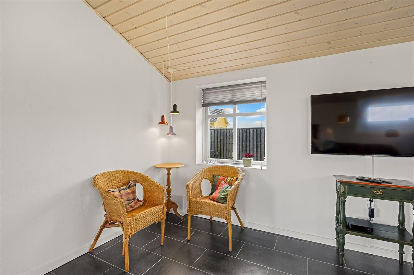 I ferieboligen er der 1 TV. Radio. CD-afspiller. Der er mindst 4 danske kanaler. 1-3 svenske kanaler. 1-3 norske kanaler. 1-3 tyske kanaler. Der er trådløst internet til rådighed.