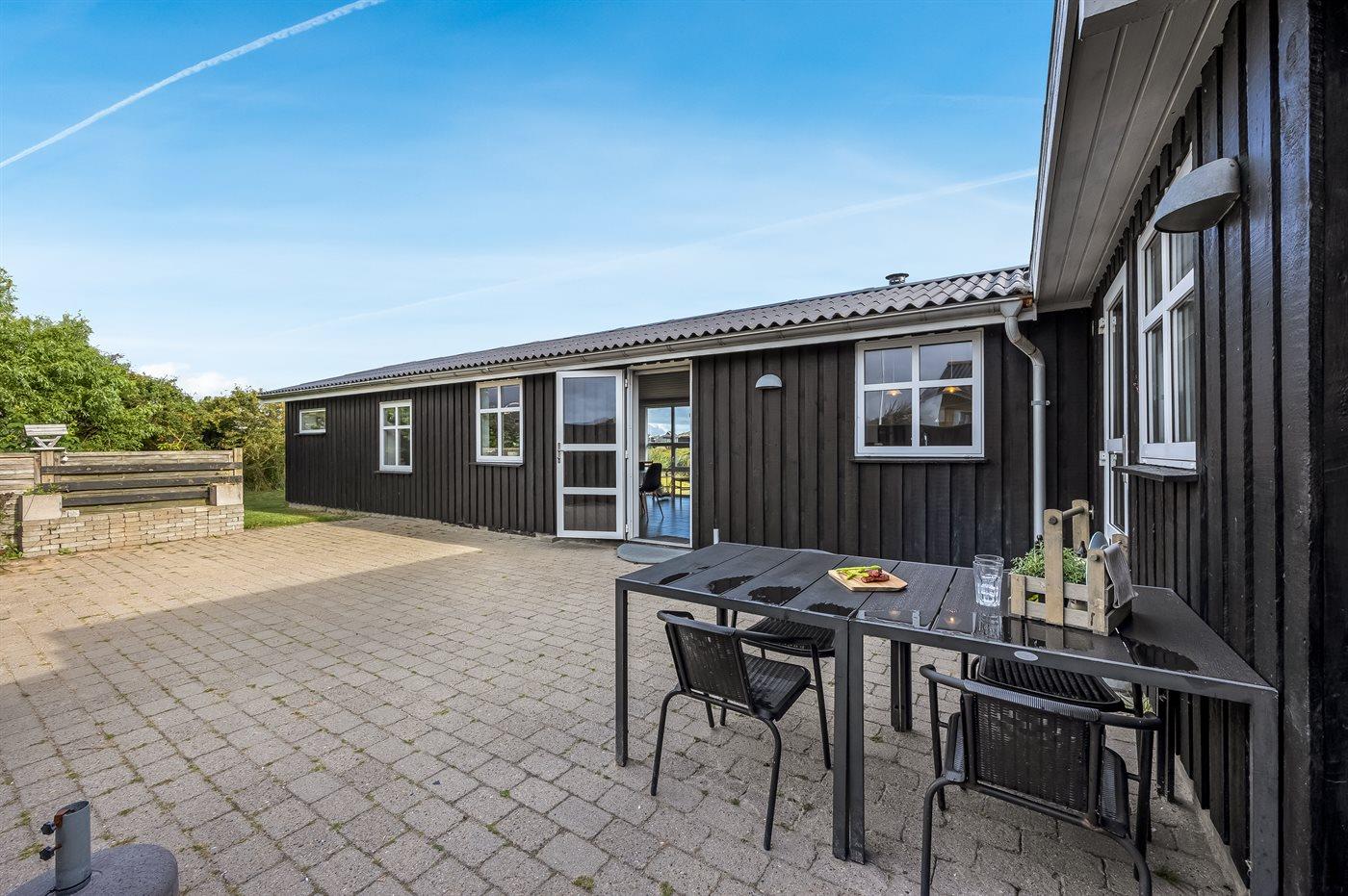Ferieboligen er beliggende på en 870 m² stor naturgrund. Grunden er indhegnet. Der er 450 m til havet. Nærmeste forretning er beliggende i en afstand af 500 m. Til ferieboligen hører 86 m² terrasseareal. Udgang til solgård. Der er redskabsrum. Grill til rådighed. Der er carport til rådighed. Parkering ved ferieboligen.