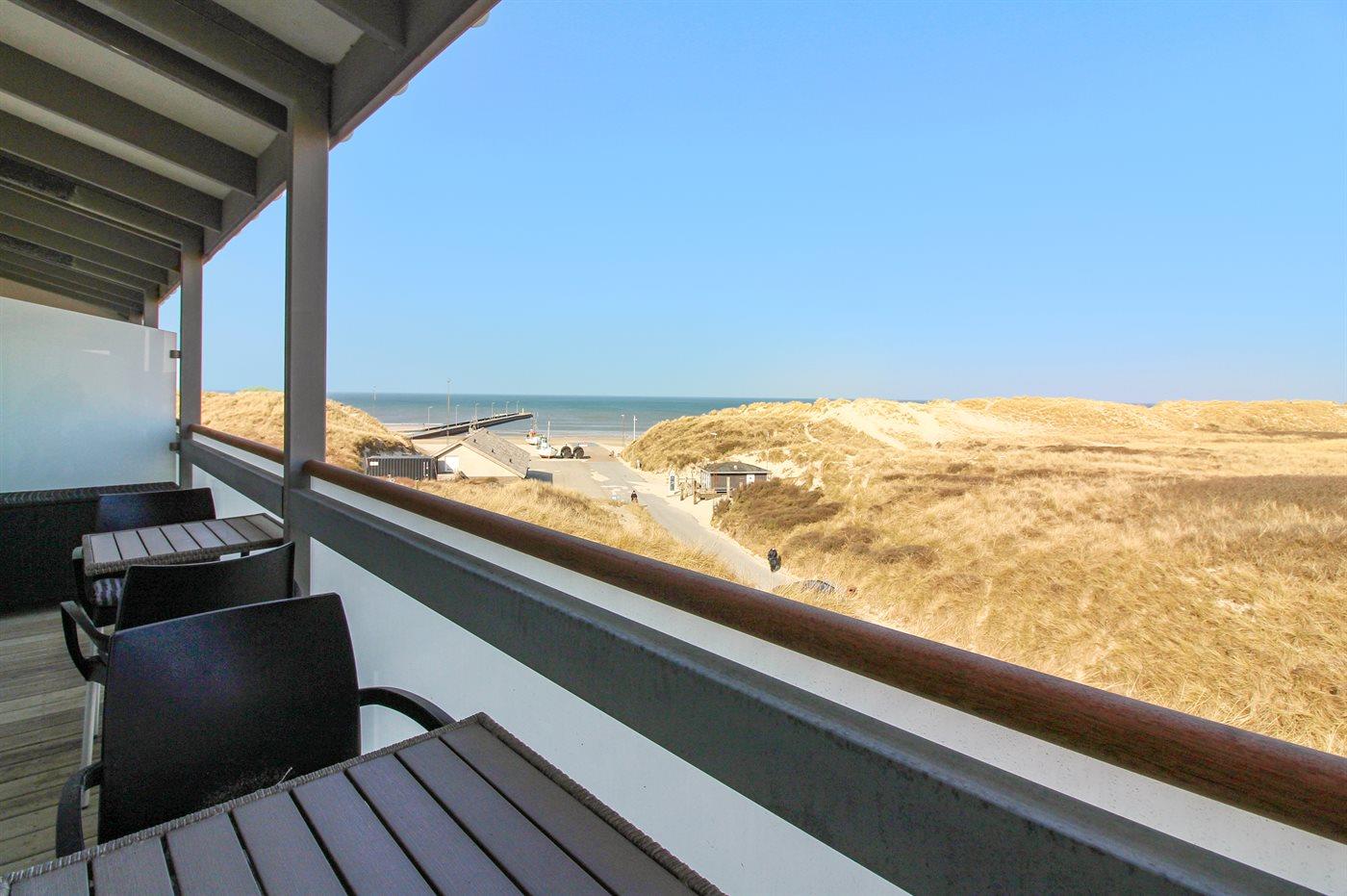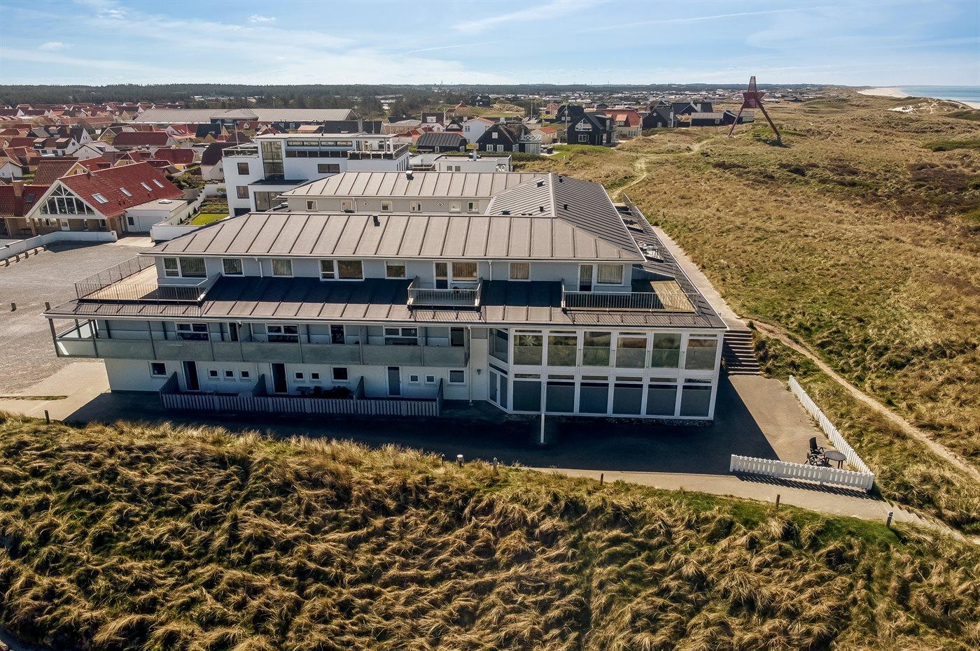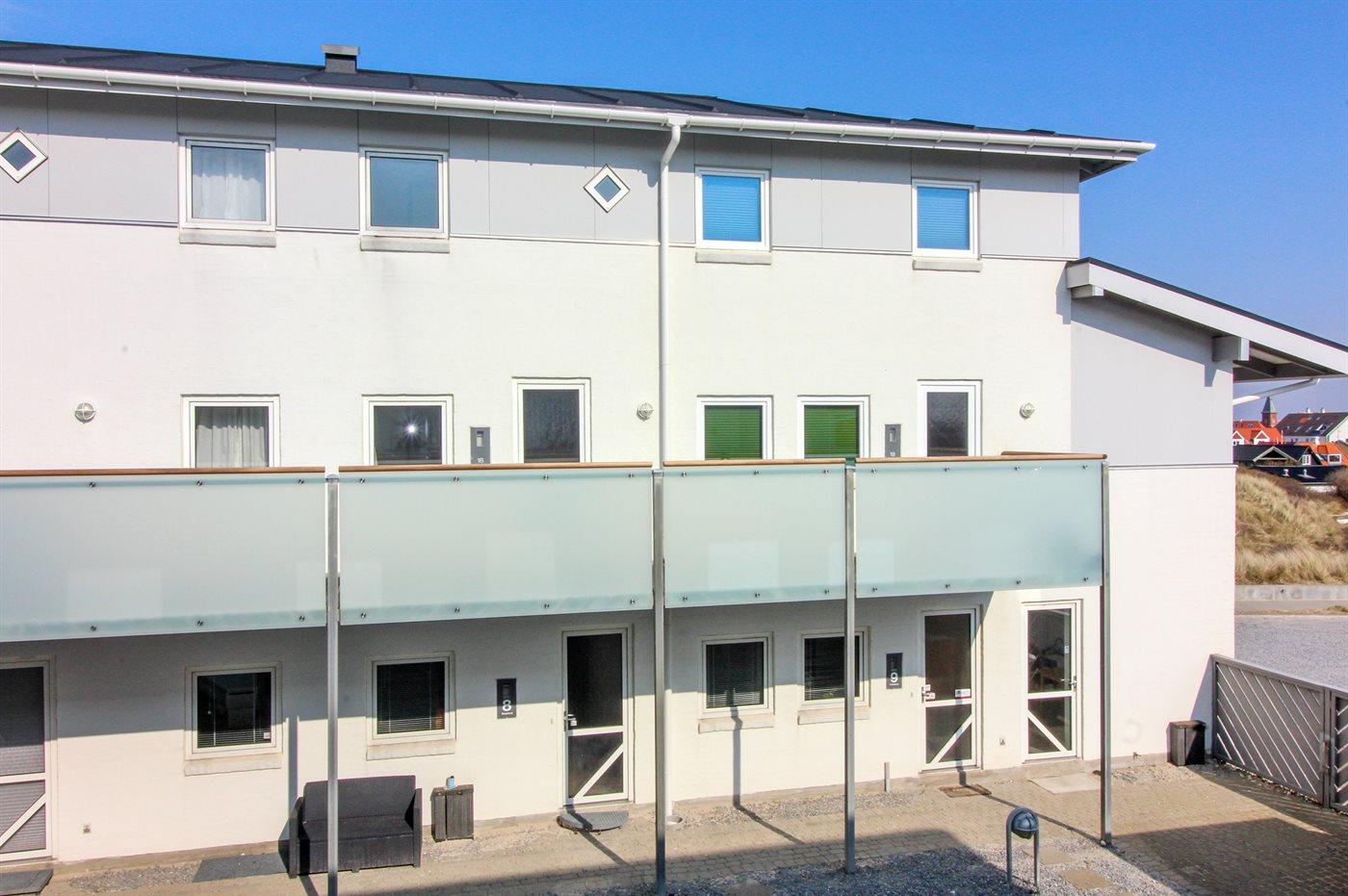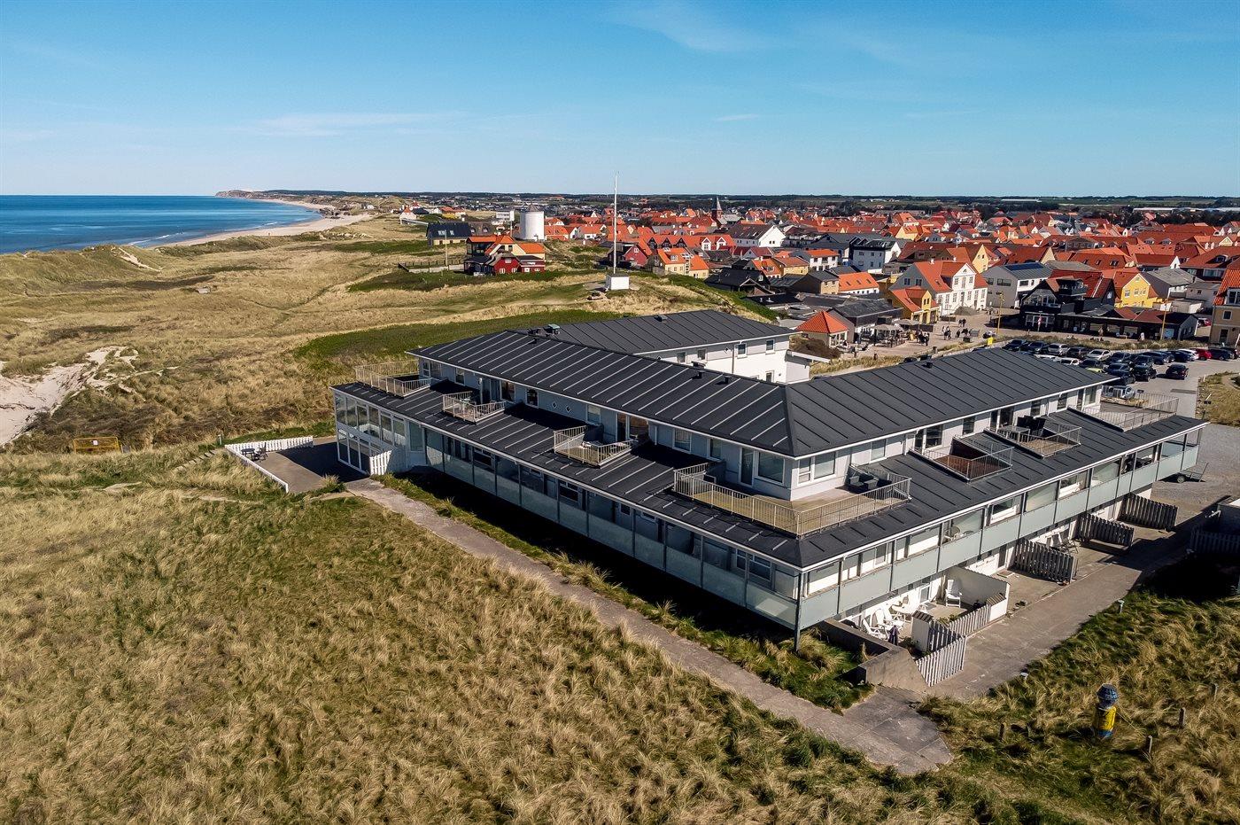Lejligheden er i to etager, med værelser og køkken i stueetagen og stor stue med altan på 1. sal. Fra altanen får du en helt unik udsigt over byen på din højre side, stranden på din venstre, og kigger du lige ud, kan du se helt ud til Rubjerg Knude Fyr på en klar dag.
