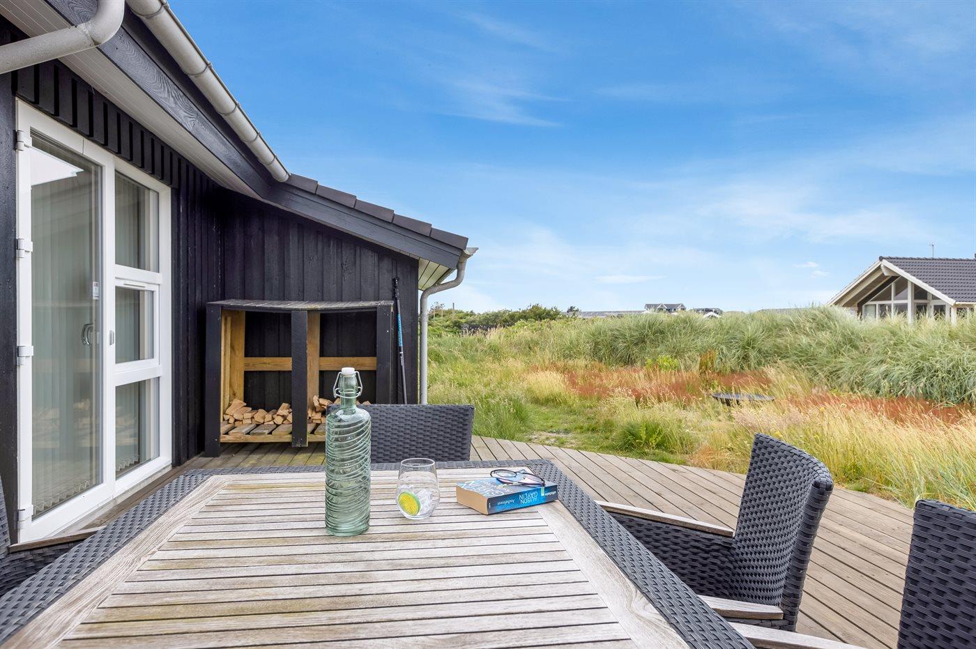 Ferieboligen er beliggende på en 2000 m² stor naturgrund. Der er 300 m til havet. Nærmeste forretning er beliggende i en afstand af 1400 m. Til ferieboligen hører åbent terrasseareal. Desuden er der overdækket terrasse. Der er redskabsrum. Grill til rådighed. Parkering ved ferieboligen.