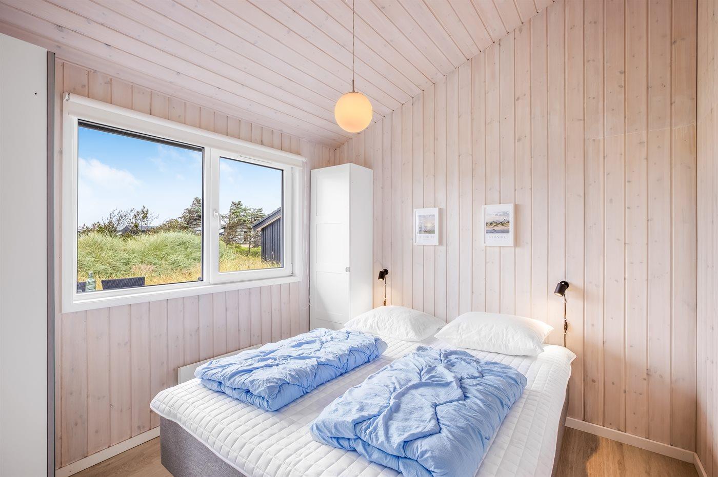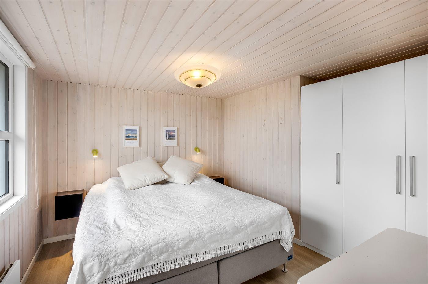 Der er i alt 4 soveværelser. Sovepladserne fordeler sig på: 6 sovepladser i dobbeltsenge. 2 sovepladser i enkeltsenge. 2 sovepladser på madrasser. 2 af disse sovepladser befinder sig på husets hems.