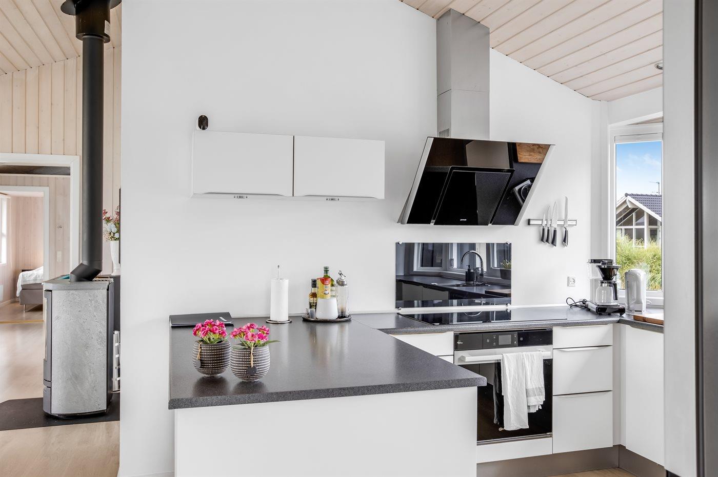 Køkkenet er udstyret med 1 amerikansk køleskab uden muligheden for at lave isterninger. Der er 4 induktionskogeplader, varmluftovn, mikrobølgeovn samt opvaskemaskine.