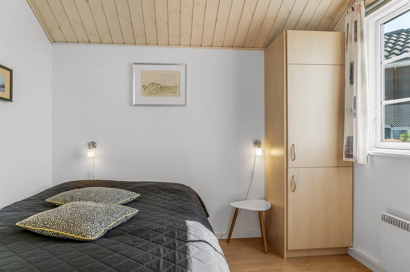 Der er i alt 4 soveværelser. Sovepladserne fordeler sig på: 4 sovepladser i dobbeltsenge. 1 soveplads i enkeltseng. 1 soveplads i sovesofa (enkelt). Derudover er der 1 stk. barneseng.