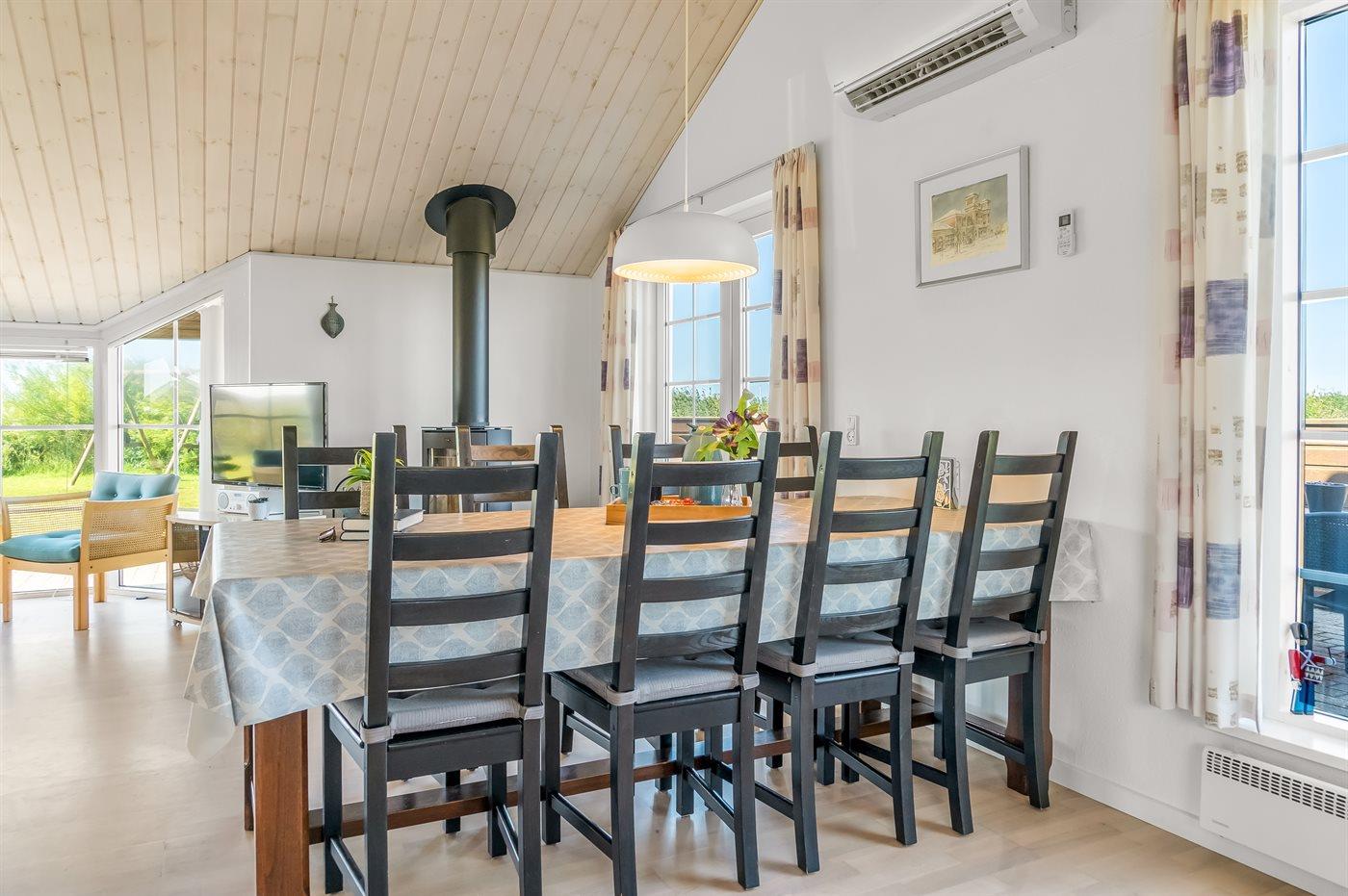 Sommerhuset egner sig til 6 personer samt 1 barn op til 3 år. Ferieboligen er på 94 m² og er bygget i 2002. Det er tilladt at medbringe 1 husdyr. Ferieboligen er udstyret med energibesparende varmepumpe. Der er gulvvarme i alle klinkegulve. Ferieboligen har vaskemaskine. Tørretumbler. Frysekapacitet på 98 liter. Der er desuden brændeovn. Til de små er der 1 stk. barnestol.