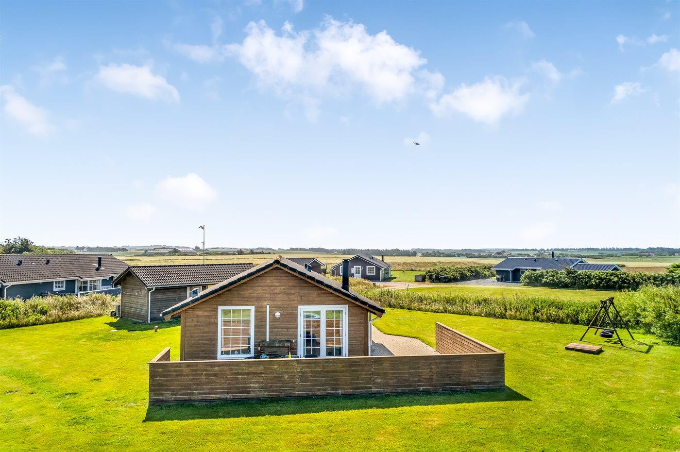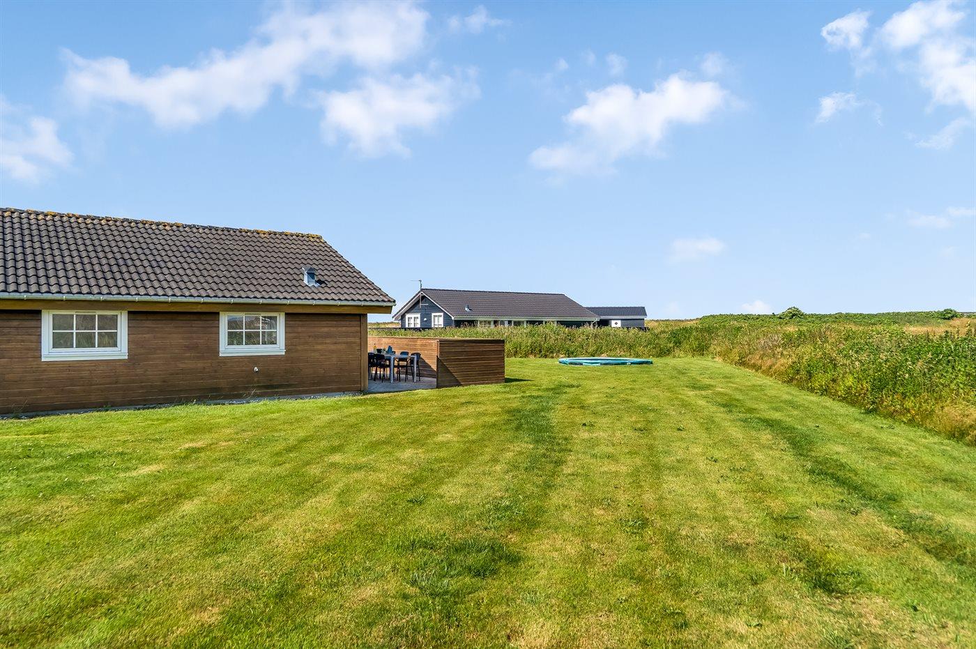 Ferieboligen er beliggende på en 1260 m² stor naturgrund. Der er 650 m til havet. Nærmeste forretning er beliggende i en afstand af 1400 m. Til ferieboligen hører 60 m² terrasseareal. Der er redskabsrum. Gynge. Sandkasse. Trampolin. Der er carport til rådighed. Der er installeret stik til opladning af elbil. Parkering ved ferieboligen.
