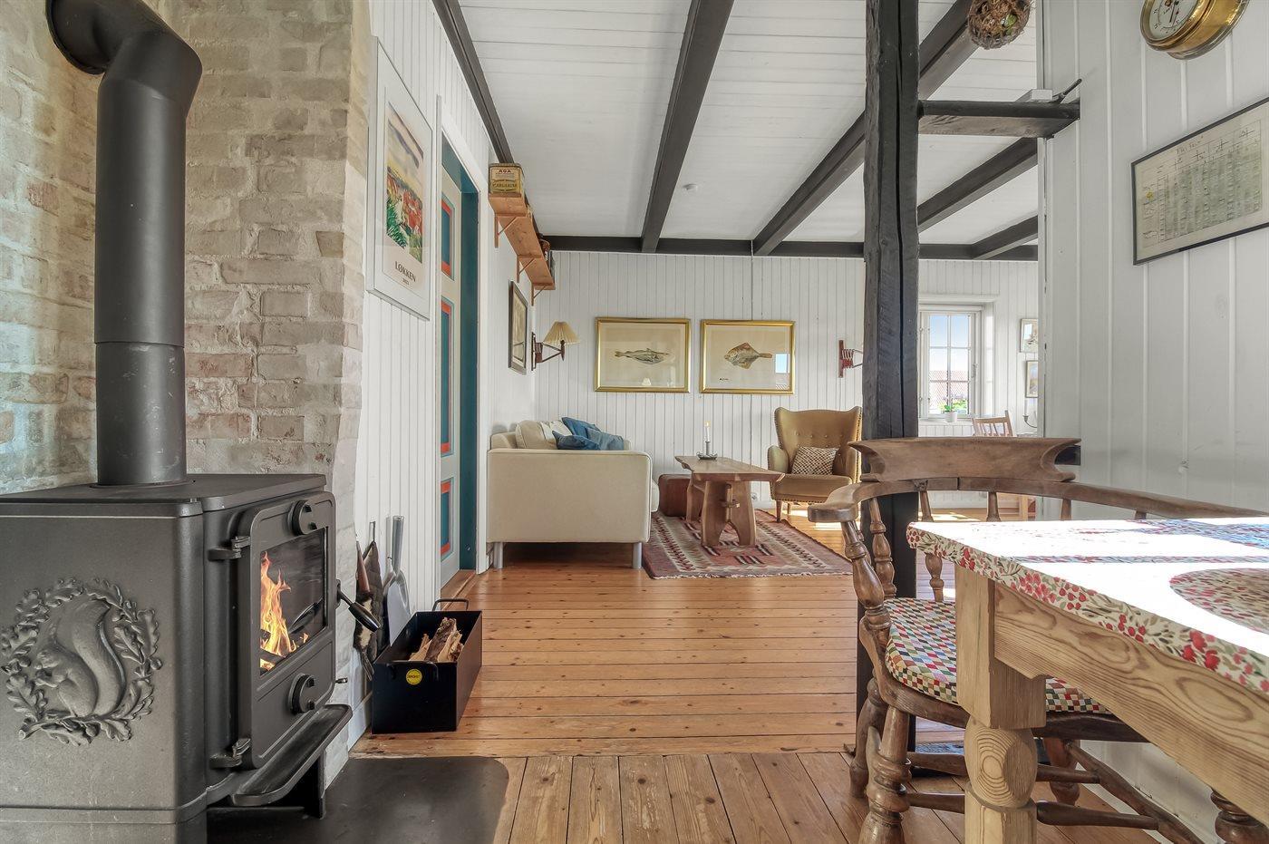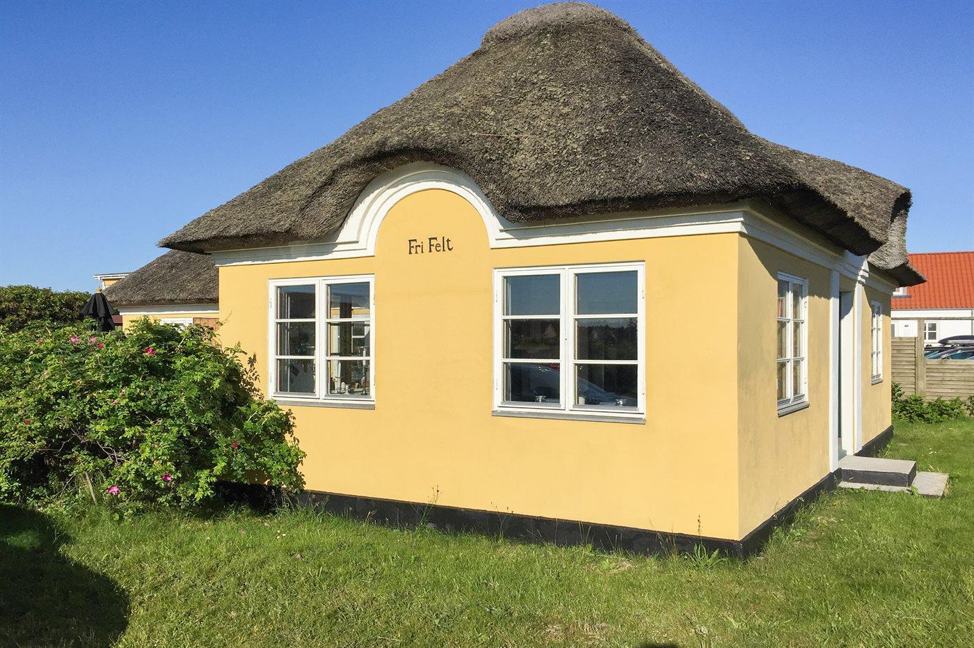 Charmerende og idyllisk sommerhus med stråtag og sprossede vinduer holdt i den oprindelige stil. Det hyggelige hus er beliggenden på en kuperet grund tæt på stranden og Vesterhavet og i kort afstand til centrum. Til huset hører flere solrige terrasser med gode muligheder for læ.