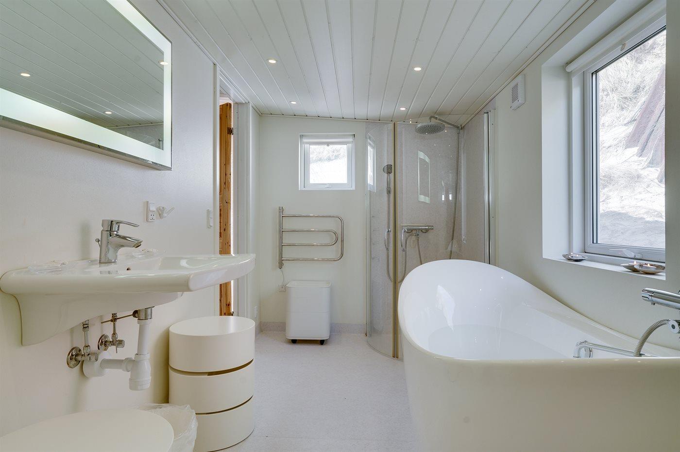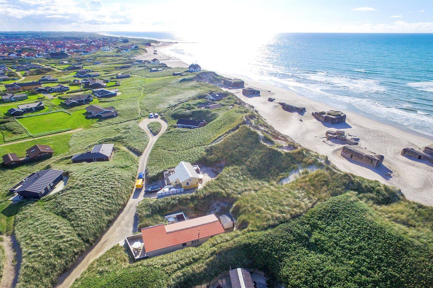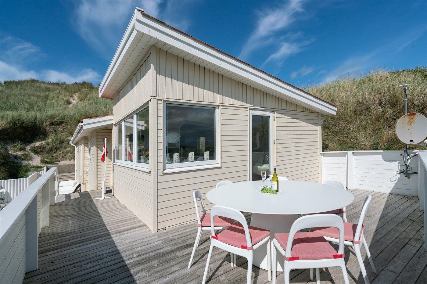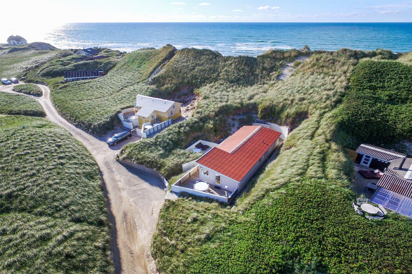 Kør ad de små veje helt ud til de høje klitter hvor dette skønne sommerhus ligger hævet over vejen i yderste klitrække til stranden og Vesterhavet. Huset er bygget ind i klitten i god læ for vestenvinden, og med sin høje beliggenhed er der fin udsigt over sommerhusområdet fra opholdsstuen. Fra toppen af grunden er der til gengæld havudsigt. Til huset hører en god lukket terrasse mod øst og syd.