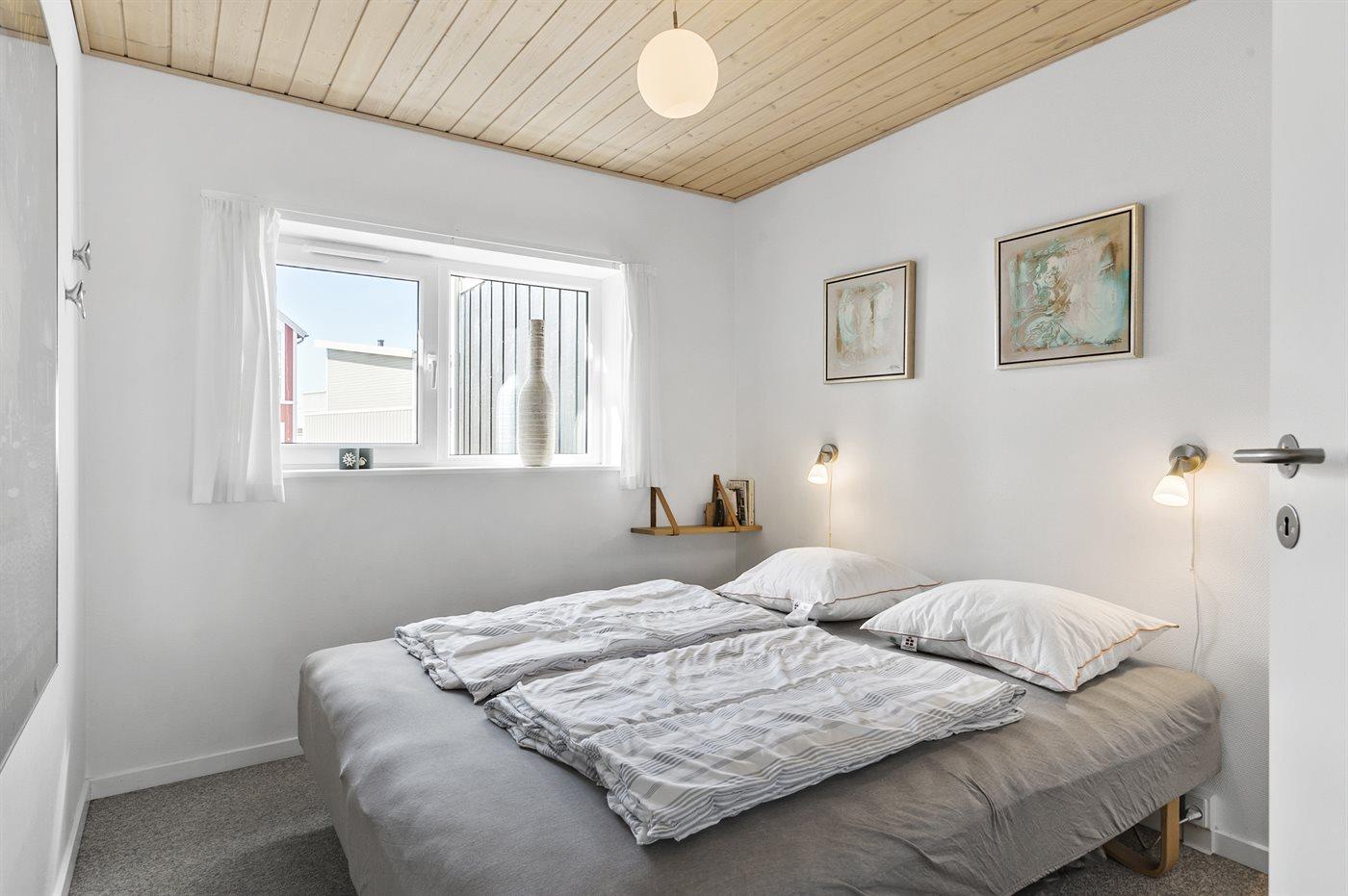 Der er i alt 3 soveværelser. Sovepladserne fordeler sig på: 4 sovepladser i dobbeltsenge. 2 sovepladser i enkeltsenge. 2 sovepladser på madrasser. 2 af disse sovepladser befinder sig på husets hems. Derudover er der 1 stk. barneseng.