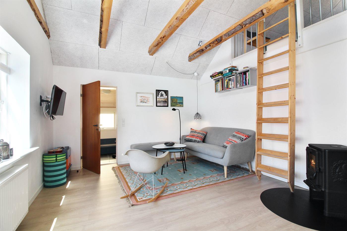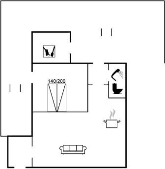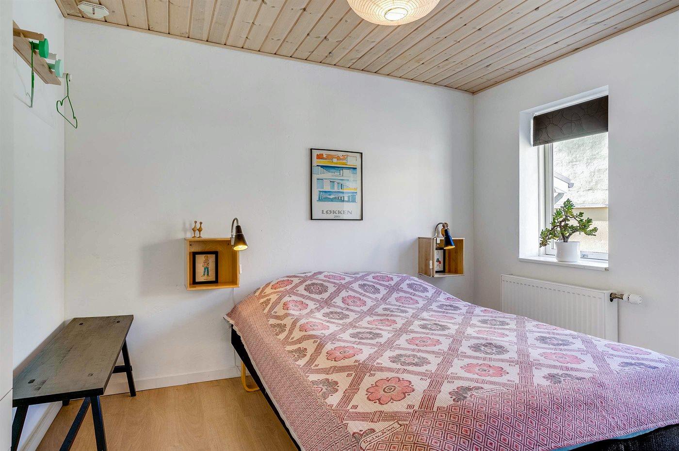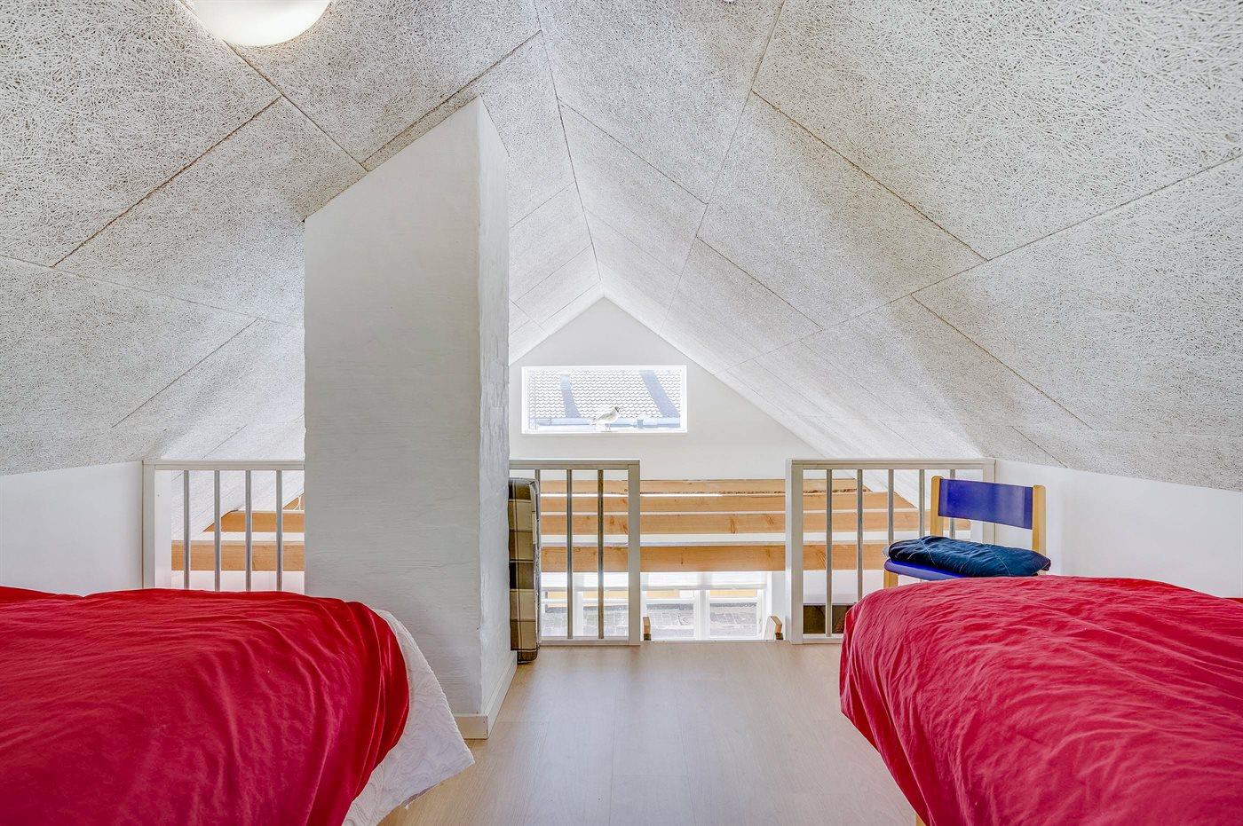 Der er i alt 1 soveværelse. Sovepladserne fordeler sig på: 4 sovepladser i dobbeltsenge. 1 soveplads i enkeltseng. 3 af disse sovepladser befinder sig på husets hems. Derudover er der 1 stk. barneseng.