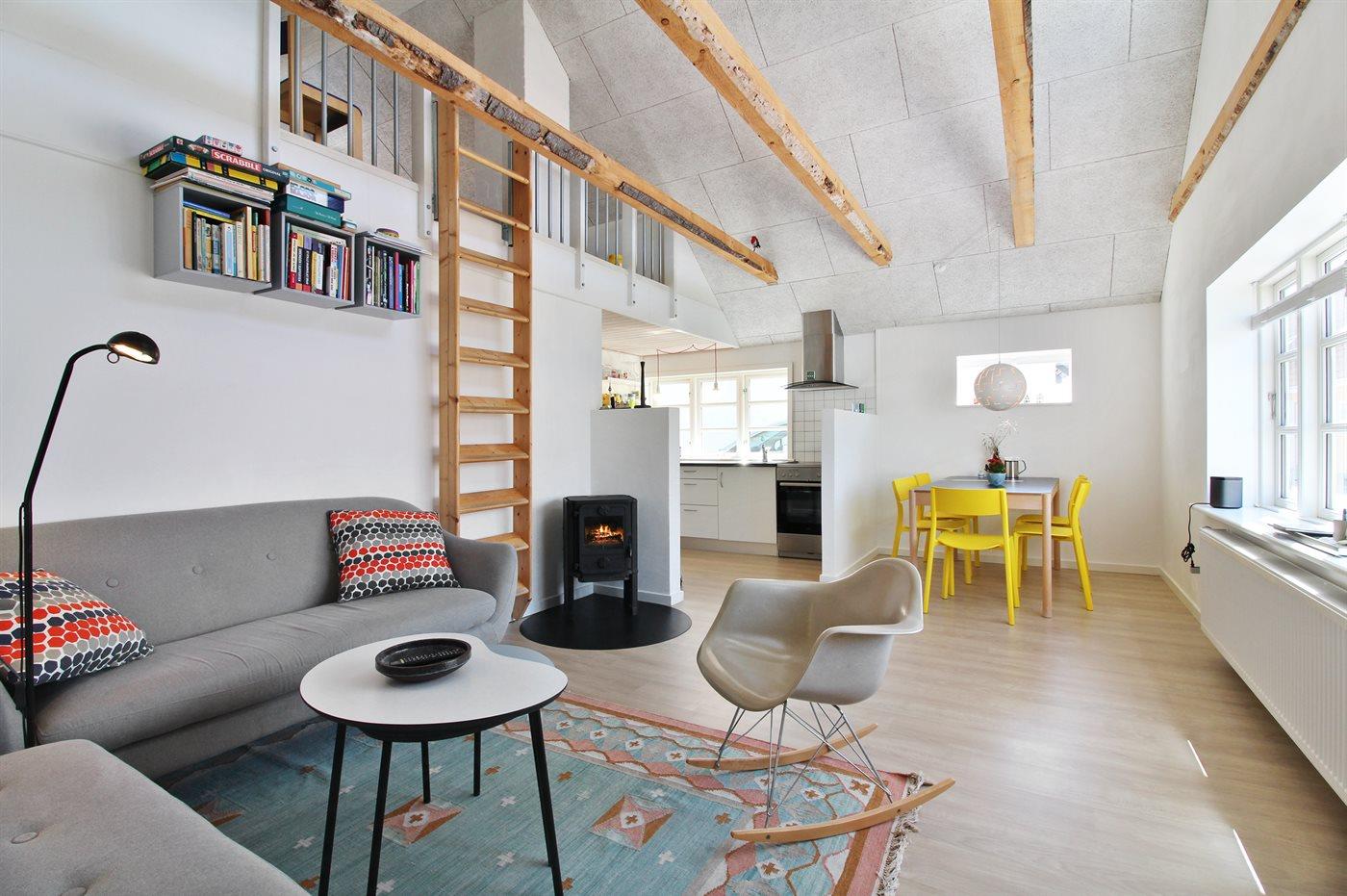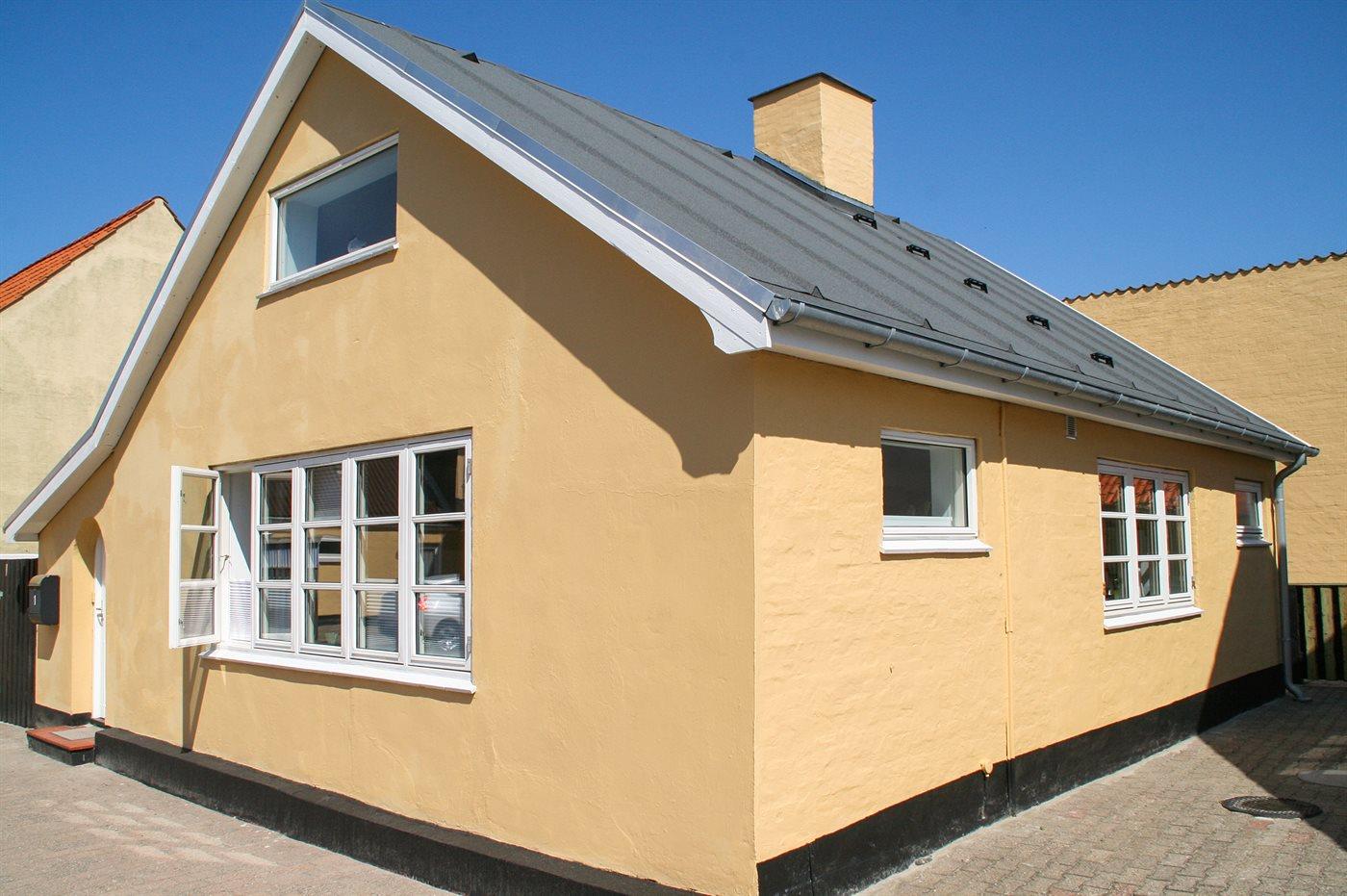 Hyggeligt byhus, beliggende i roligt kvarter tæt ved bymidte og kun 200 m fra Løkkens fine sandstrand.1. salen udgøres af en stor hems med tre gode sengepladser, som i sær er velegnet til børn.