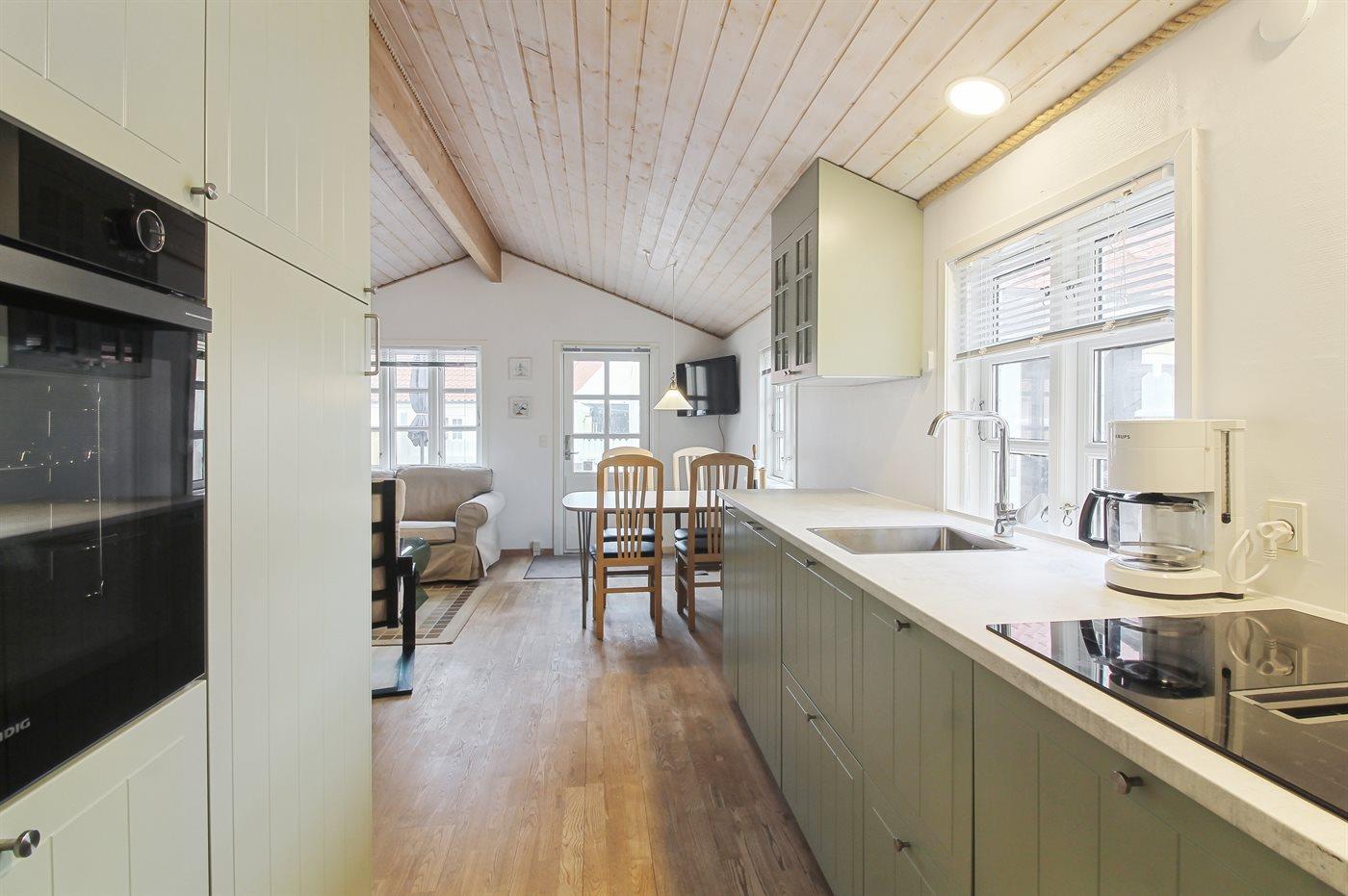 Køkkenet er udstyret med 1 køleskab. Der er 4 induktionskogeplader, varmluftovn samt opvaskemaskine.
