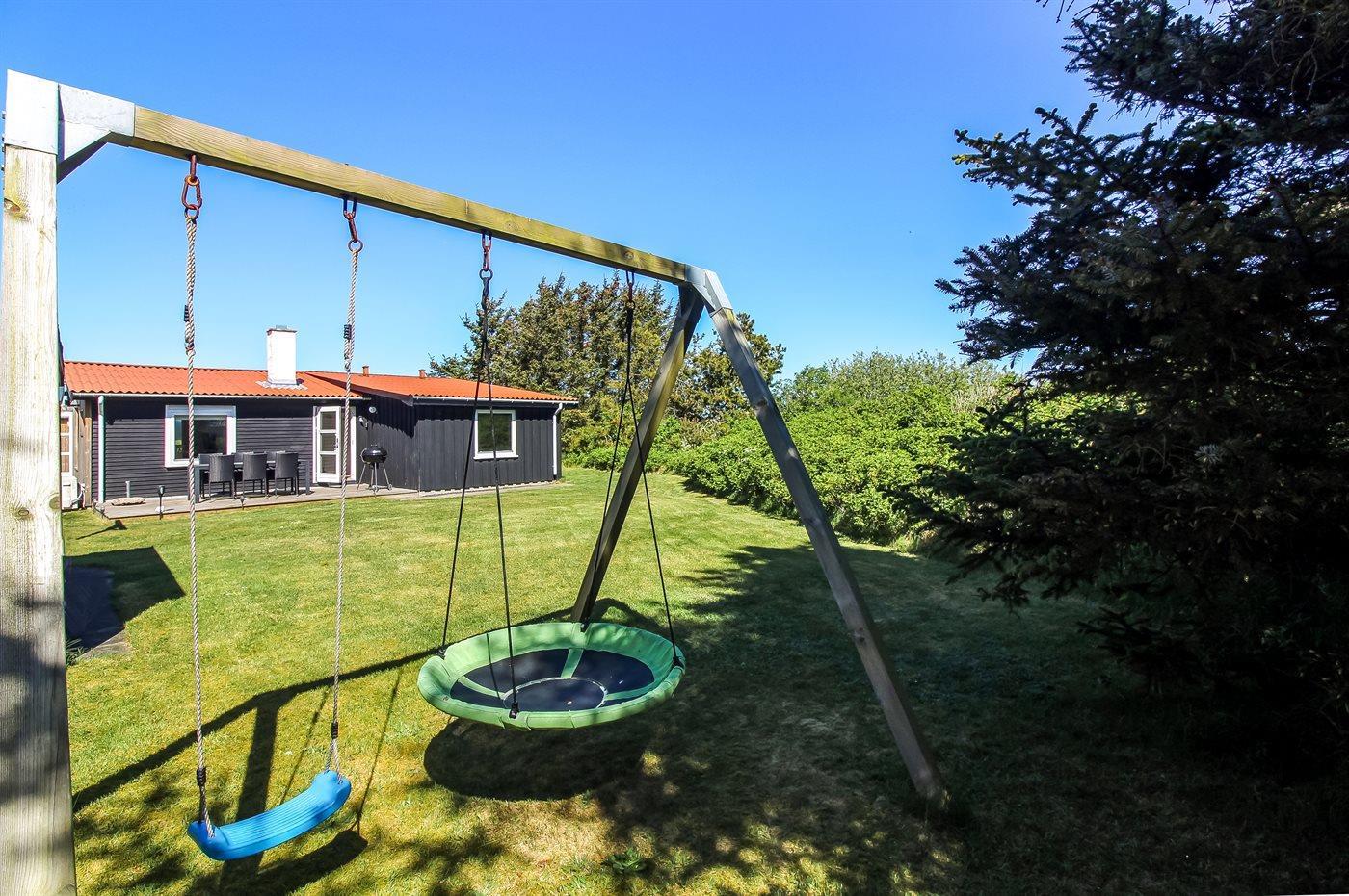 Ferieboligen er beliggende på en 1475 m² stor naturgrund. Der er 600 m til havet. Nærmeste forretning er beliggende i en afstand af 1250 m. Til ferieboligen hører 15 m² lukket terrasse. Ligeledes er der adgang til udestue. Gynge. Rutchebane. Der er installeret stik til opladning af elbil. Parkering ved ferieboligen.