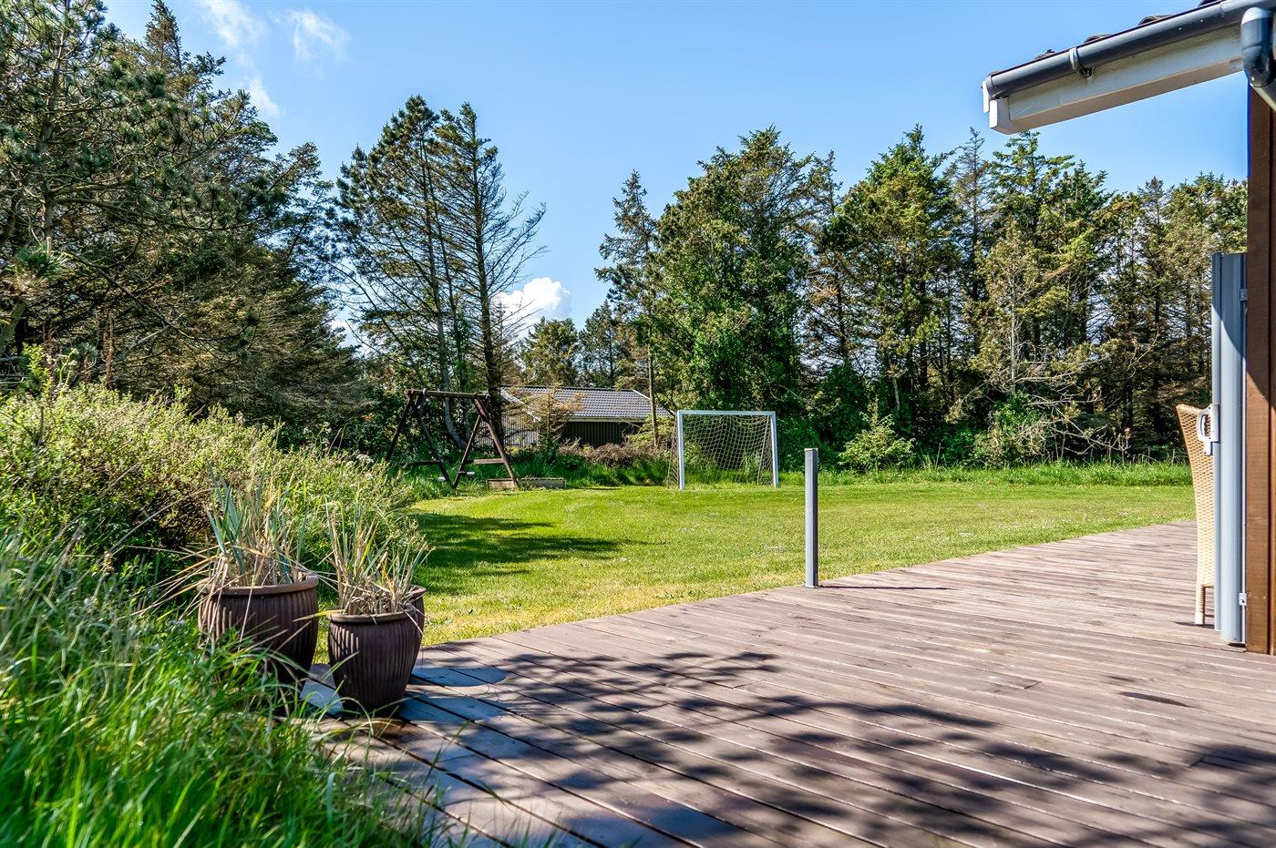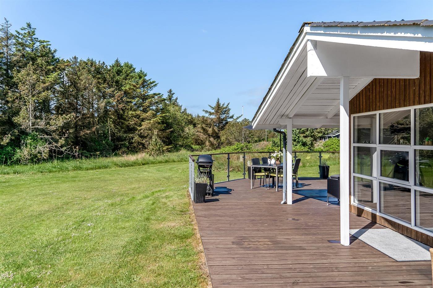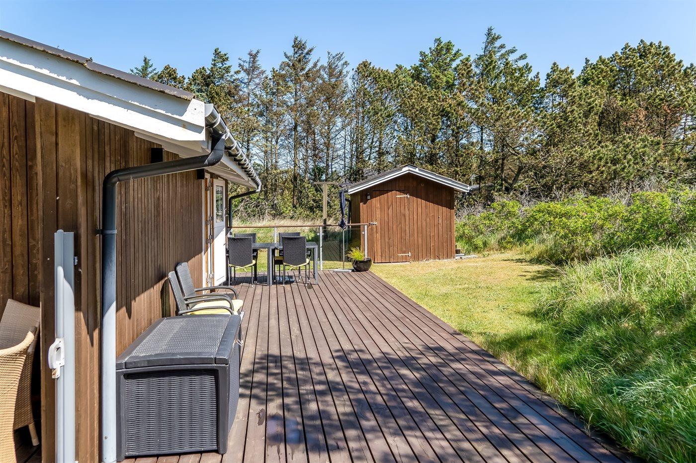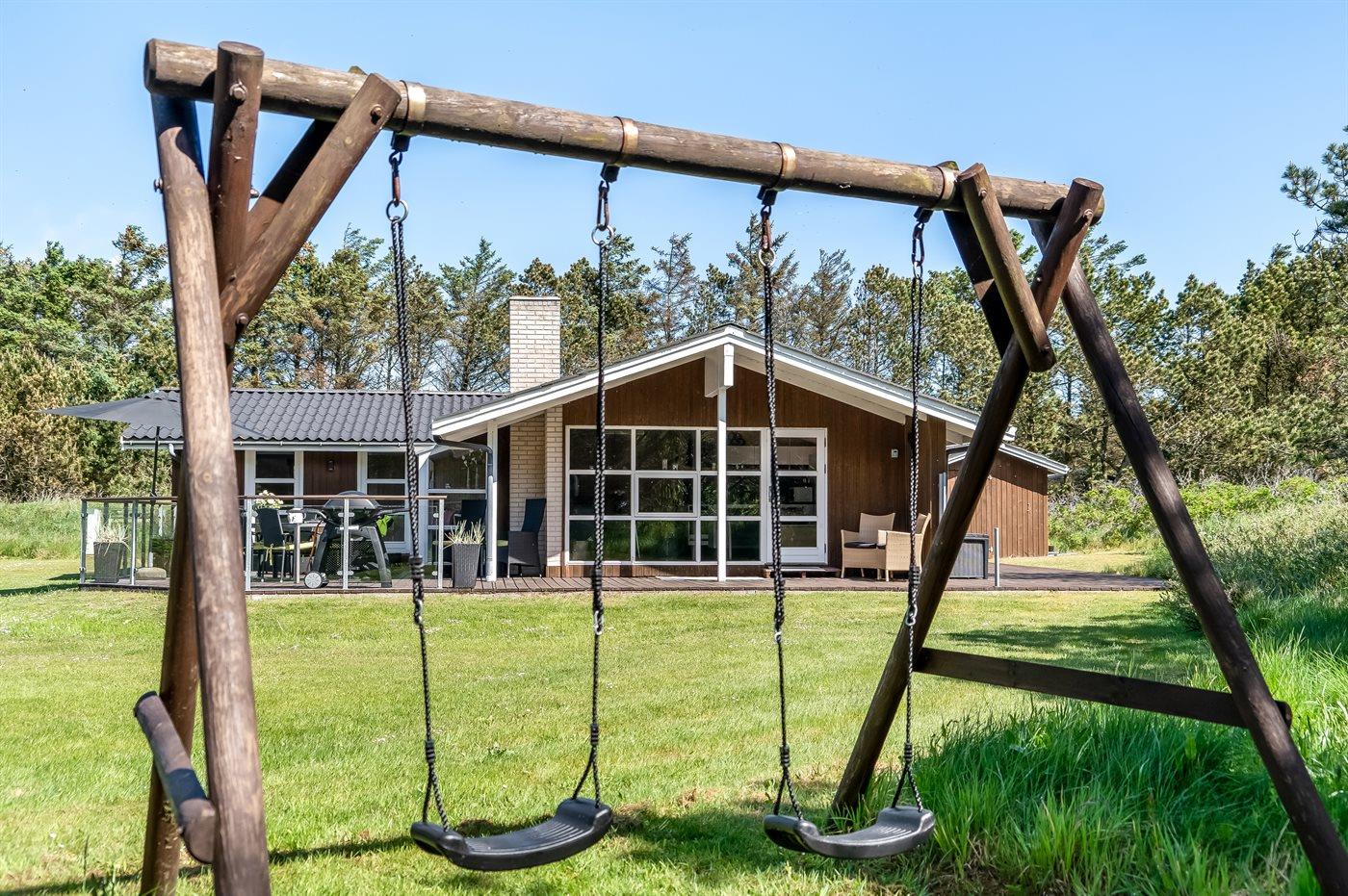Ferieboligen er beliggende på en 2500 m² stor naturgrund. Der er 800 m til havet. Nærmeste forretning er beliggende i en afstand af 3000 m. Til ferieboligen hører 70 m² terrasseareal. Desuden er der 8 m² overdækket terrasse. Der er redskabsrum. Gynge. Sandkasse. Fodboldmål. Parkering ved ferieboligen.