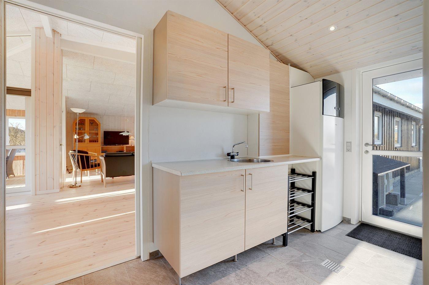 Køkkenet er udstyret med 1 køleskab. Der er 4 keramiske kogeplader, varmluftovn, mikrobølgeovn samt opvaskemaskine.