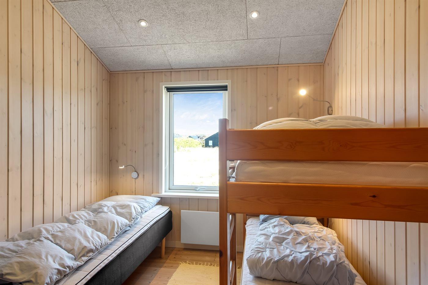 Der er i alt 5 soveværelser. Sovepladserne fordeler sig på: 6 sovepladser i dobbeltsenge. 2 sovepladser i enkeltsenge. 2 sovepladser i køjeseng. Derudover er der 1 stk. barneseng.