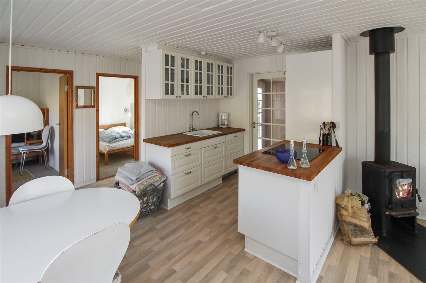 Køkkenet er udstyret med 1 køleskab. Der er 4 induktionskogeplader, varmluftovn samt opvaskemaskine.