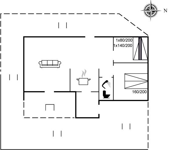Der er i alt 2 soveværelser. Sovepladserne fordeler sig på: 4 sovepladser i dobbeltsenge.1 soveplads i køjeseng.