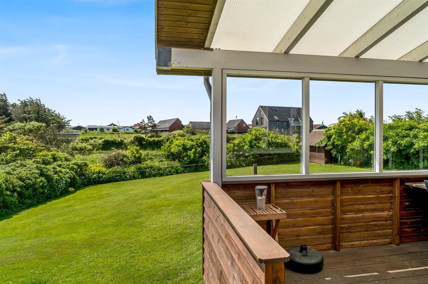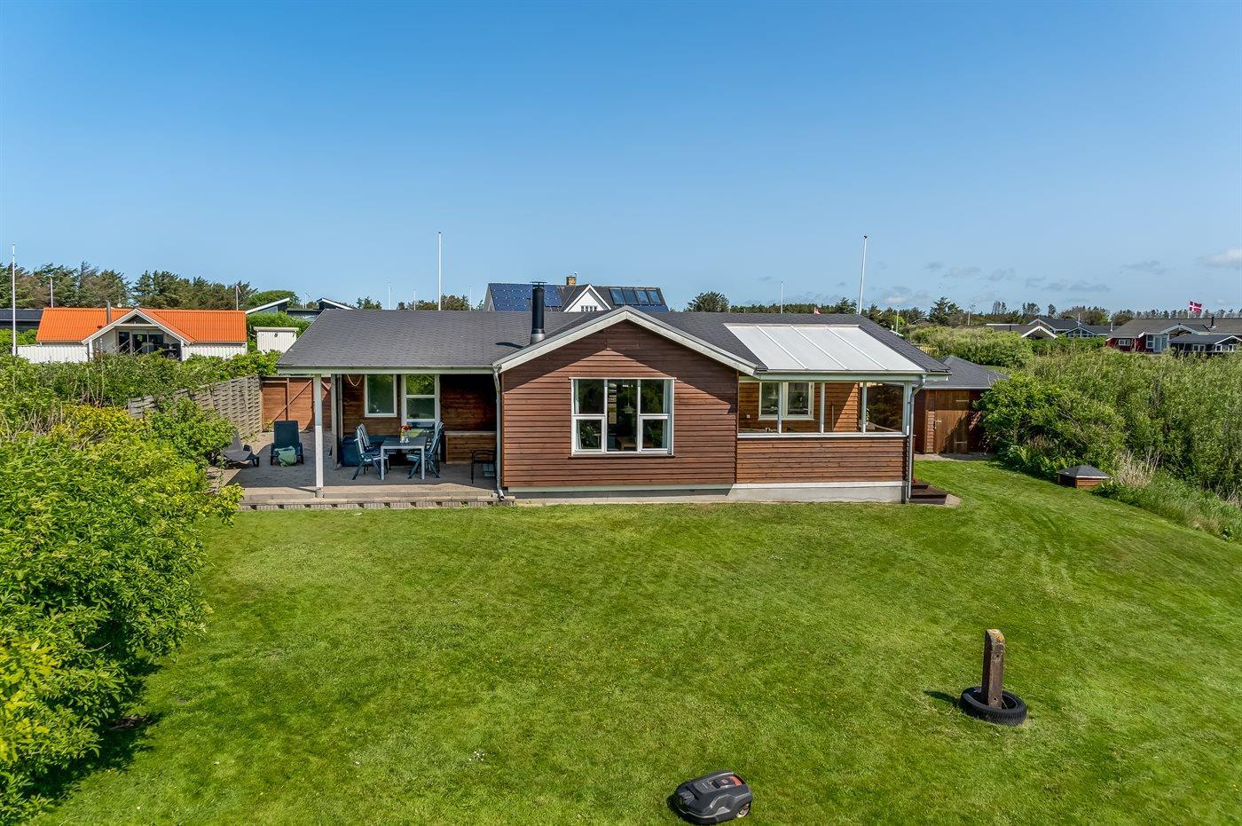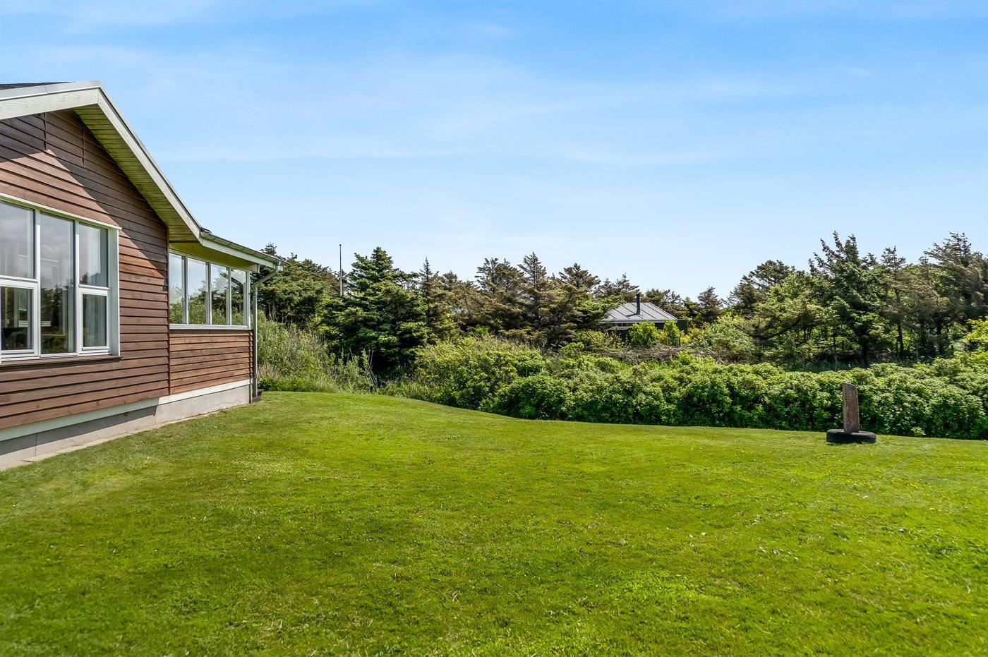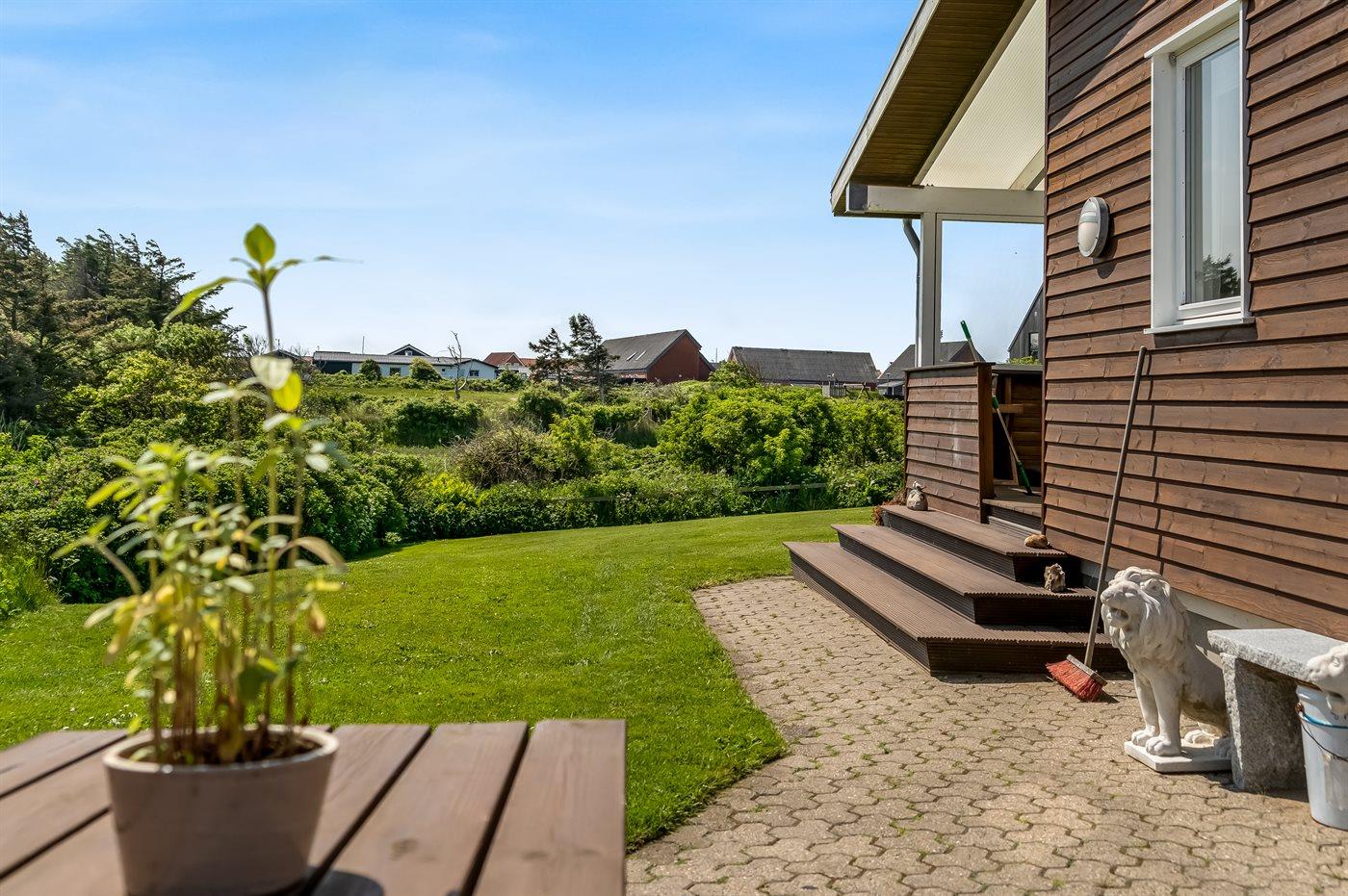 Ferieboligen er beliggende på en 1350 m² stor naturgrund. Der er 350 m til havet. Nærmeste forretning er beliggende i en afstand af 500 m. Til ferieboligen hører 45 m² terrasseareal. Desuden er der 28 m² overdækket terrasse. Parkering ved ferieboligen.