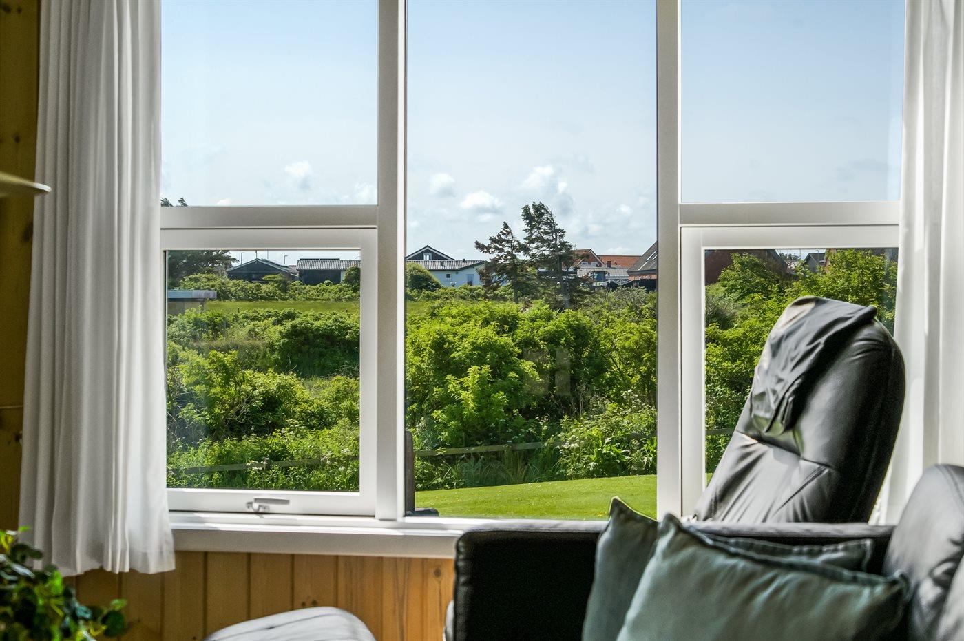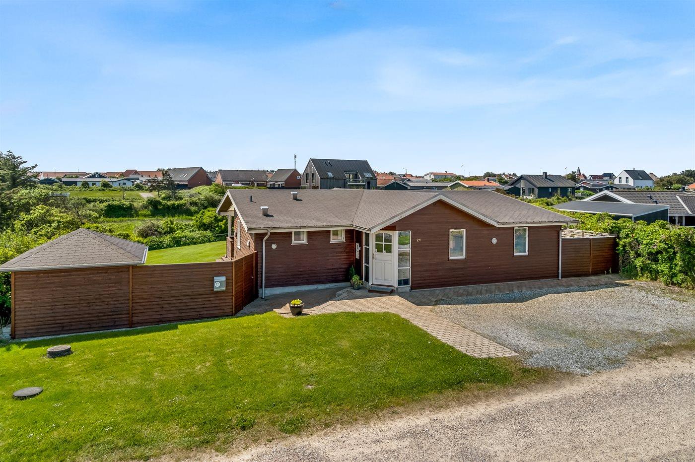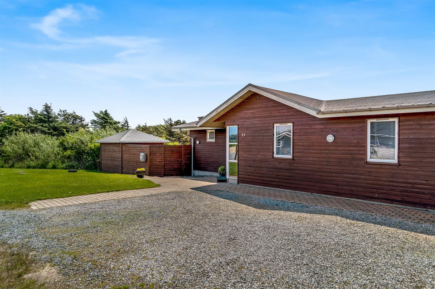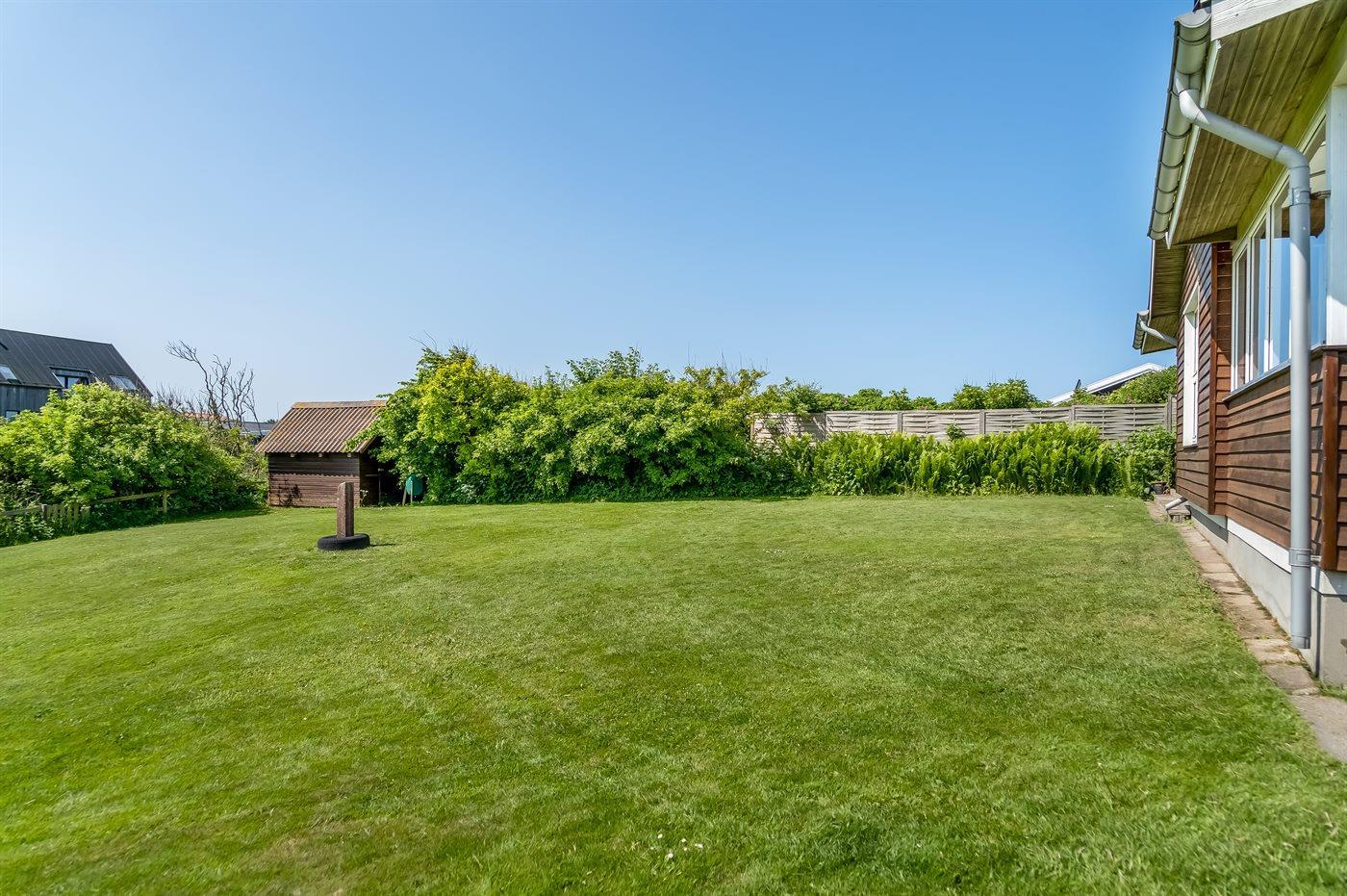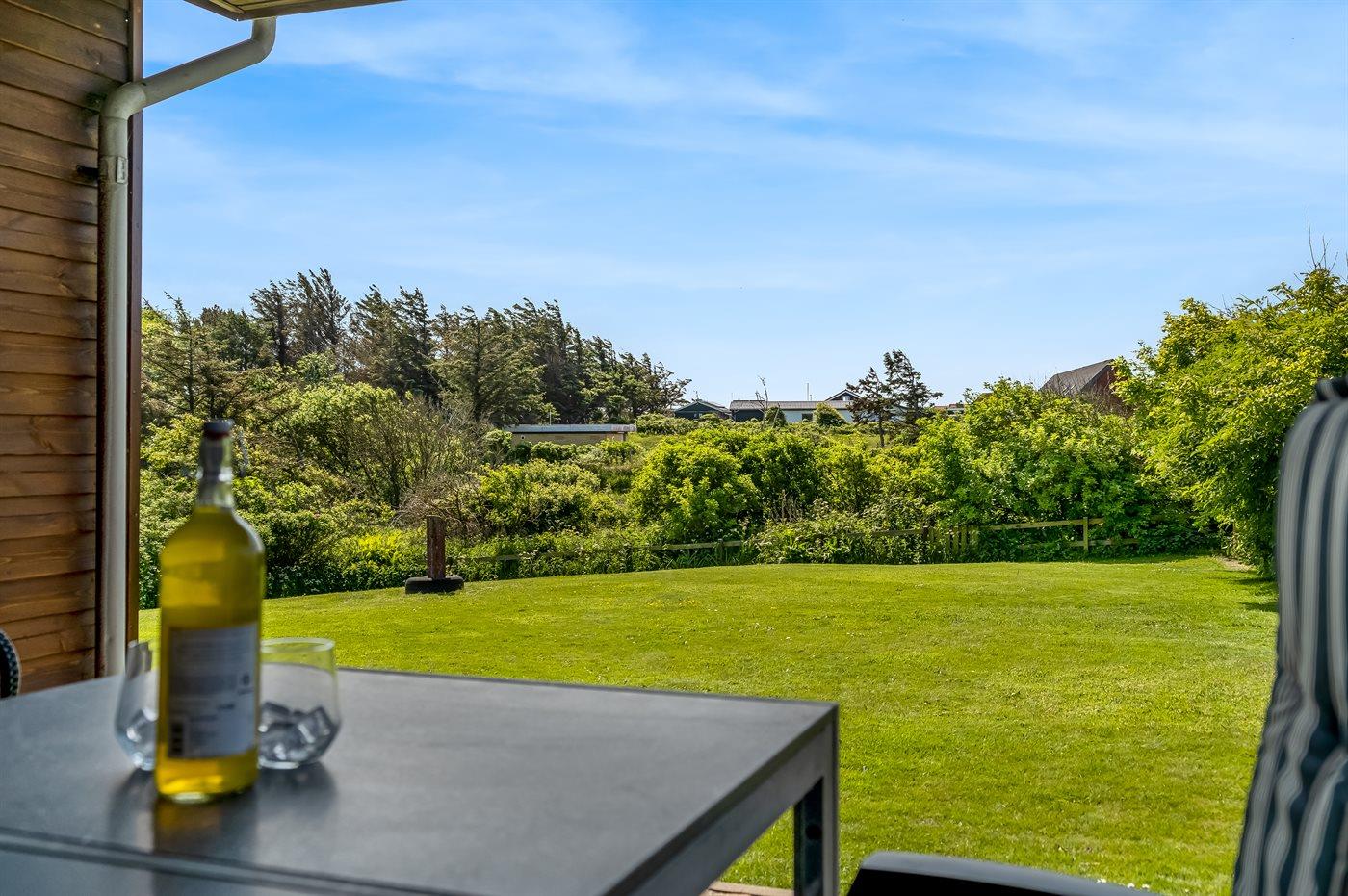 Ferieboligen er beliggende på en 1350 m² stor naturgrund. Der er 350 m til havet. Nærmeste forretning er beliggende i en afstand af 500 m. Til ferieboligen hører 45 m² terrasseareal. Desuden er der 28 m² overdækket terrasse. Parkering ved ferieboligen.